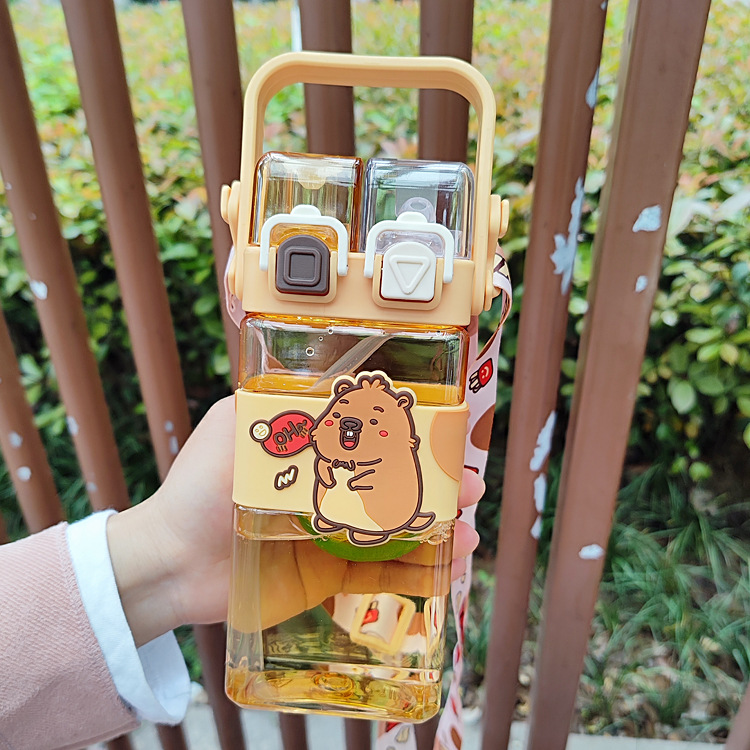 カピバラのプラスチックカップの新型高颜値双飲ストローカップの学生は携帯してかわいい女の子のアニメカップを持っています。