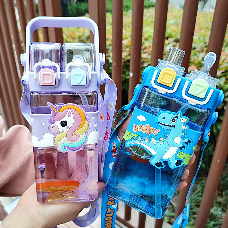 高颜値漫画分倉双飲プラスチックカップ夏児童双飲カップ学生高颜値大容量水筒