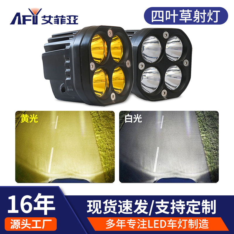 クロスボーダー専用四葉草スポットライト黄白色光レンズ40W LED作業灯オフロード車ランプ外付け前照灯