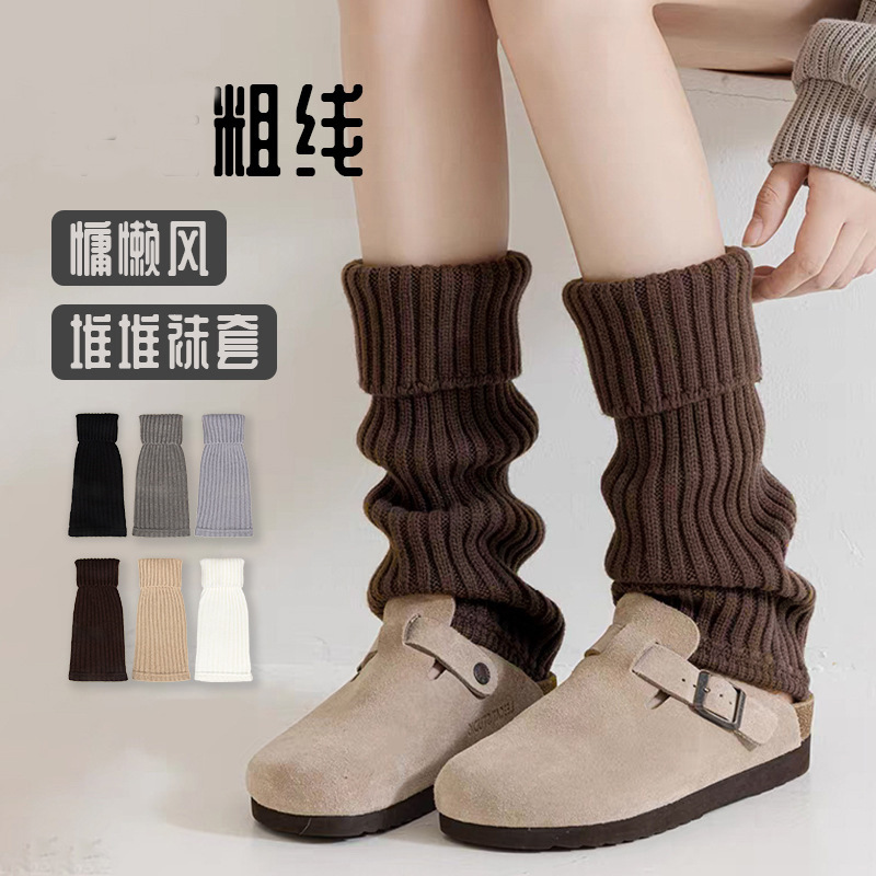 毛绒粗针踩脚护套堆堆袜针织腿套女韩版纯色保暖百搭毛线小腿袜套