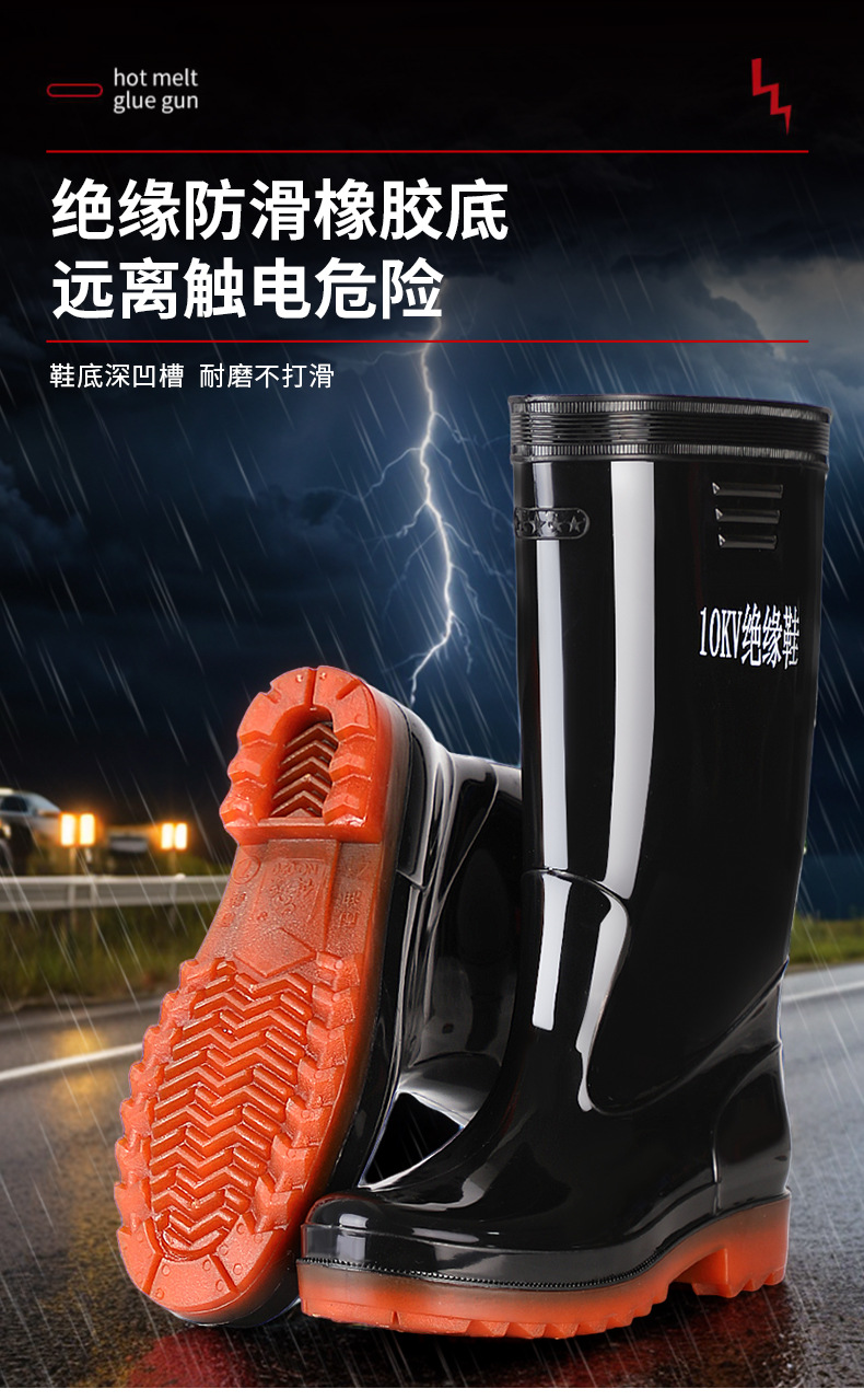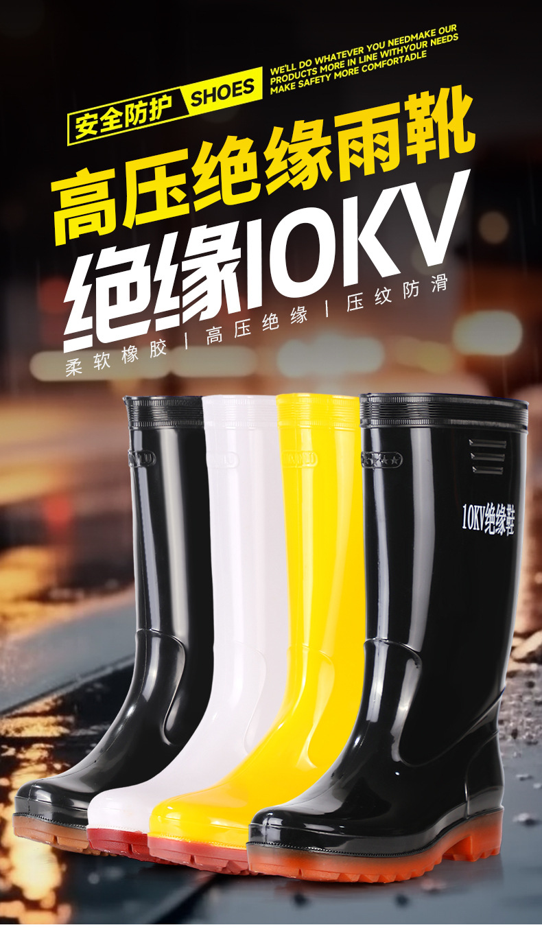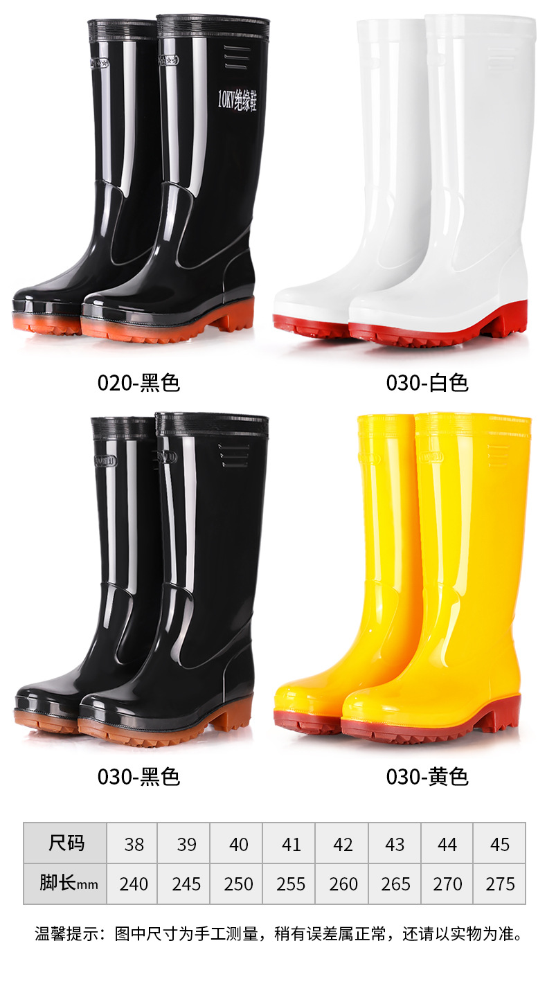男雨靴高圧絶縁靴安全防護電気工釣り工事現場施工男高筒絶縁靴ゴム靴水靴
