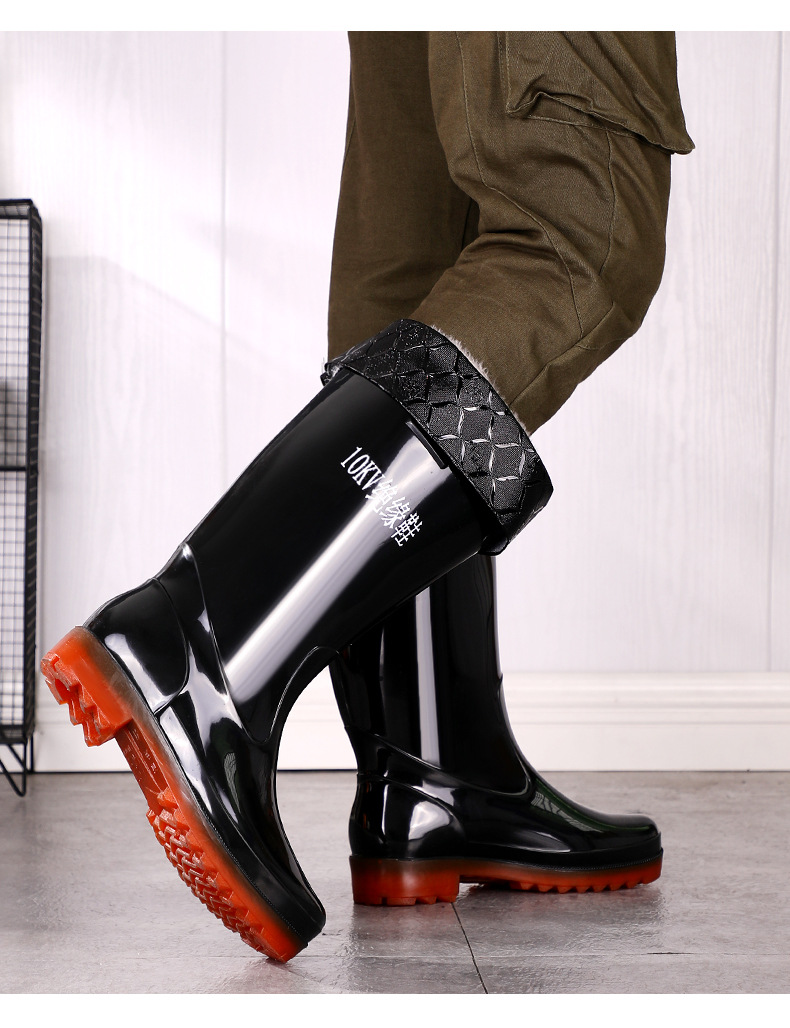 軍登黒高筒水靴長筒雨靴キッチン滑り止め水靴アウトドア靴雨靴労働保護ゴム靴男靴