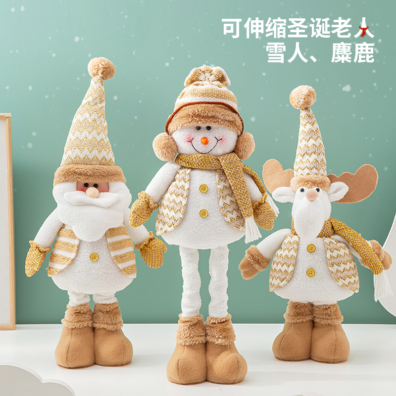 跨境圣诞节伸缩老人公仔圣诞装饰雪人麋鹿玩偶酒店商场氛围摆件