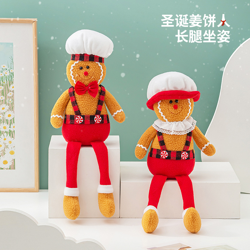 2025 新しいクリスマス装飾クリスマスジンジャーブレッドマン長い脚座り人形窓装飾クリスマスホーム装飾品