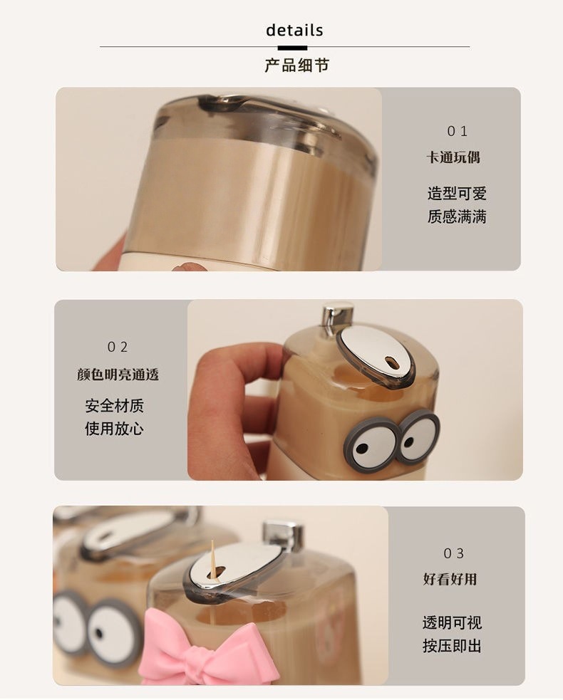 创意牙签盒自动弹出家用个性商用奶油风新款便携卡通牙签筒收纳