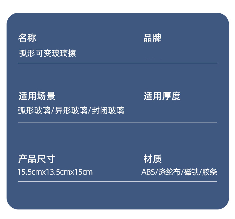 仕様 湾曲した窓クリーナーは厚さ15〜26mmのガラスに適しています。,湾曲した窓クリーナーは厚さ20〜30mmのガラスに適しています。,湾曲した窓クリーナーは厚さ25〜35mmのガラスに適しています。
