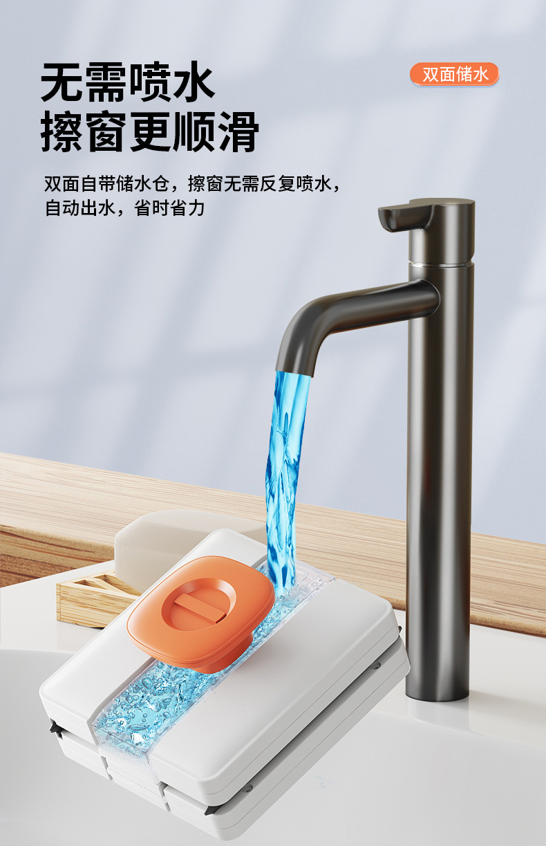 クロスボーダー新型磁気ガラス拭き延長棒付き両面水貯蔵ガラス拭き器家庭用高層ガラス神器