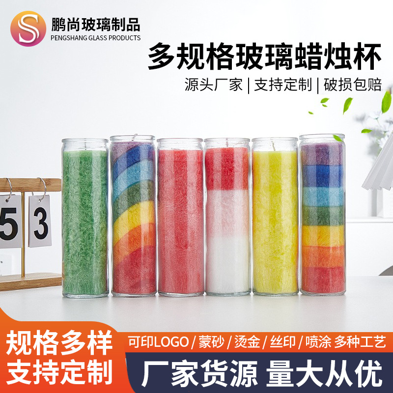 批发透明玻璃蜡烛台蜡烛杯七天烛台耶稣教堂直筒喷色多种规格