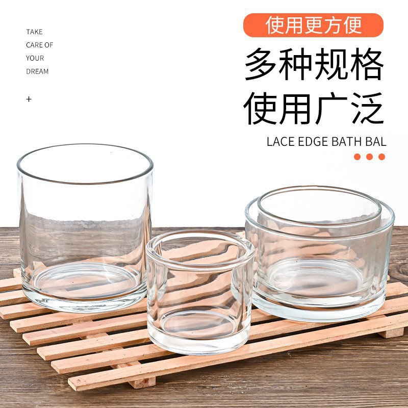 现货圆柱形玻璃蜡烛杯透明玻璃蜡烛台简约摆件香薰杯长款玻璃烛台