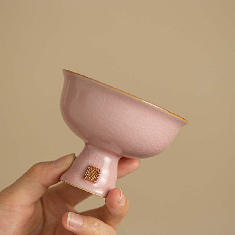 景徳鎮牡丹粉汝茶杯陶磁器茶器開片主人杯客杯品茗杯家庭用工夫茶器