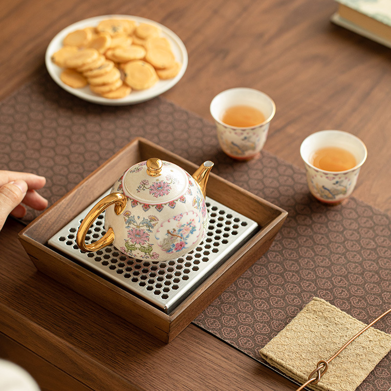 国潮エナメル彩手作り糸銀ティーポットカップ陶磁器茶道具花鳥ティーポット品茗杯セットギフトボックス