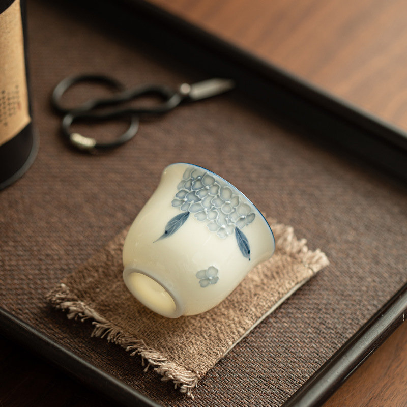 景德镇纯手绘绣球花淡雅茶杯主人杯客杯高颜值品茗杯陶瓷茶具单杯