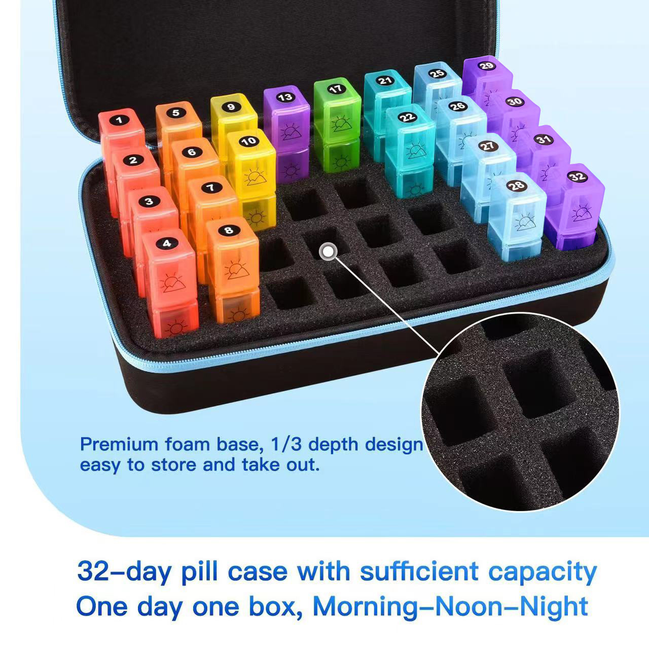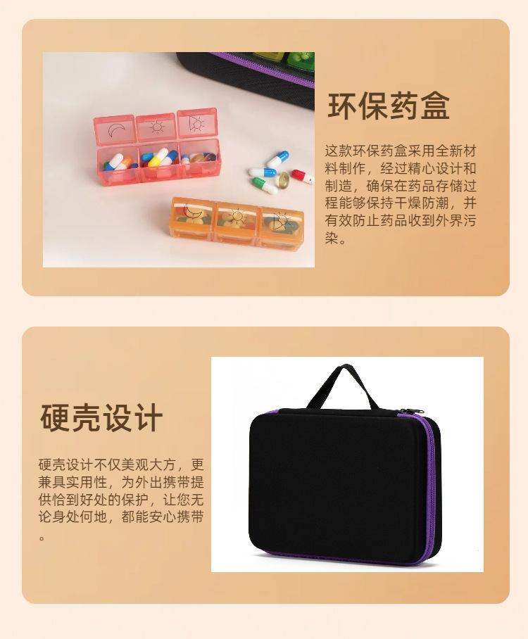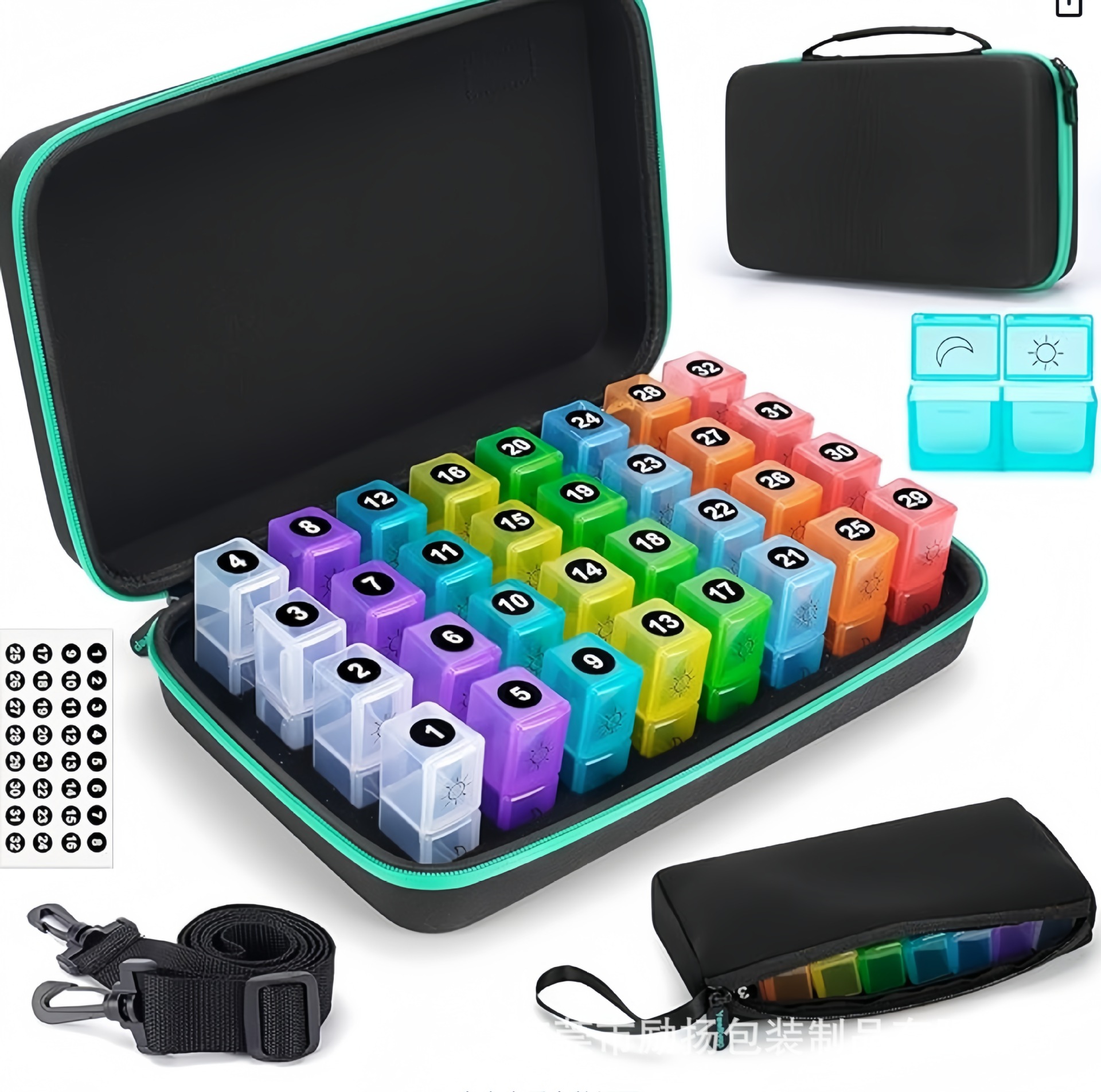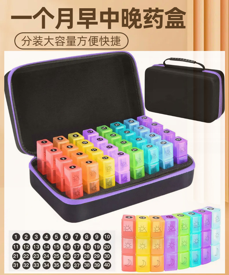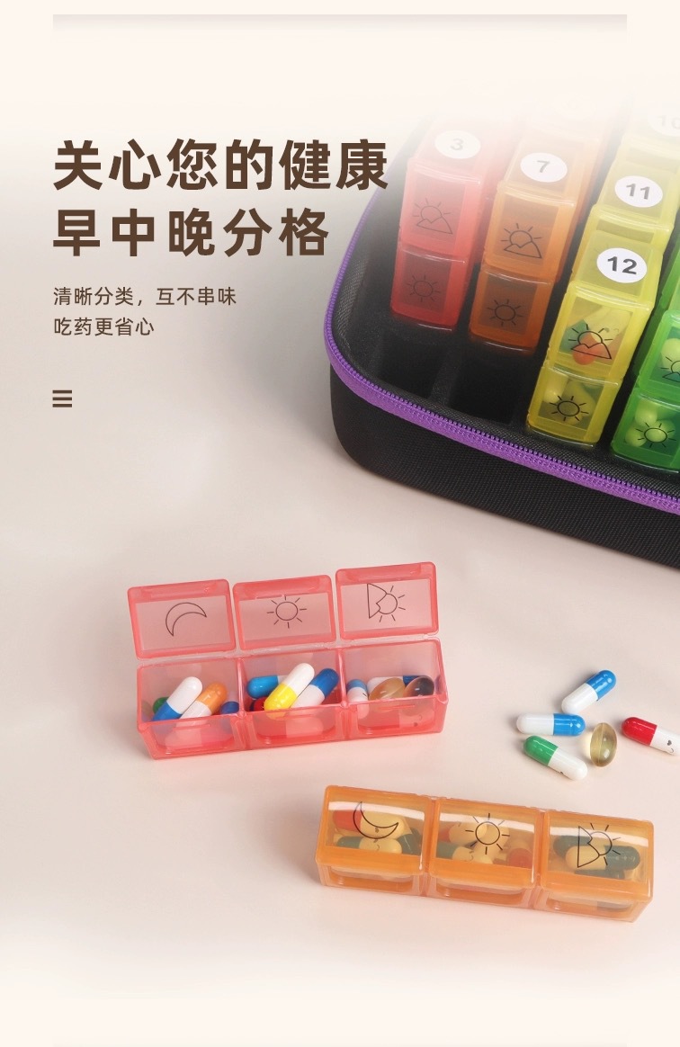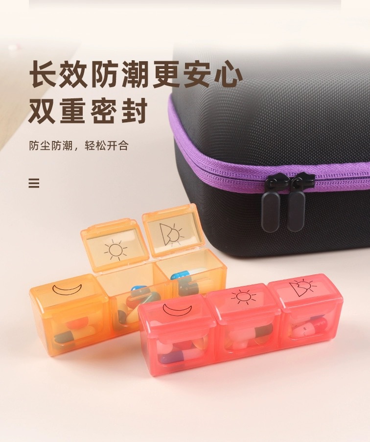 跨境药盒收纳盒一个月一天2次3次分装药瓶手提包肩带 厂家直销