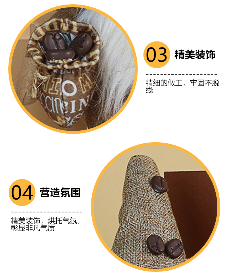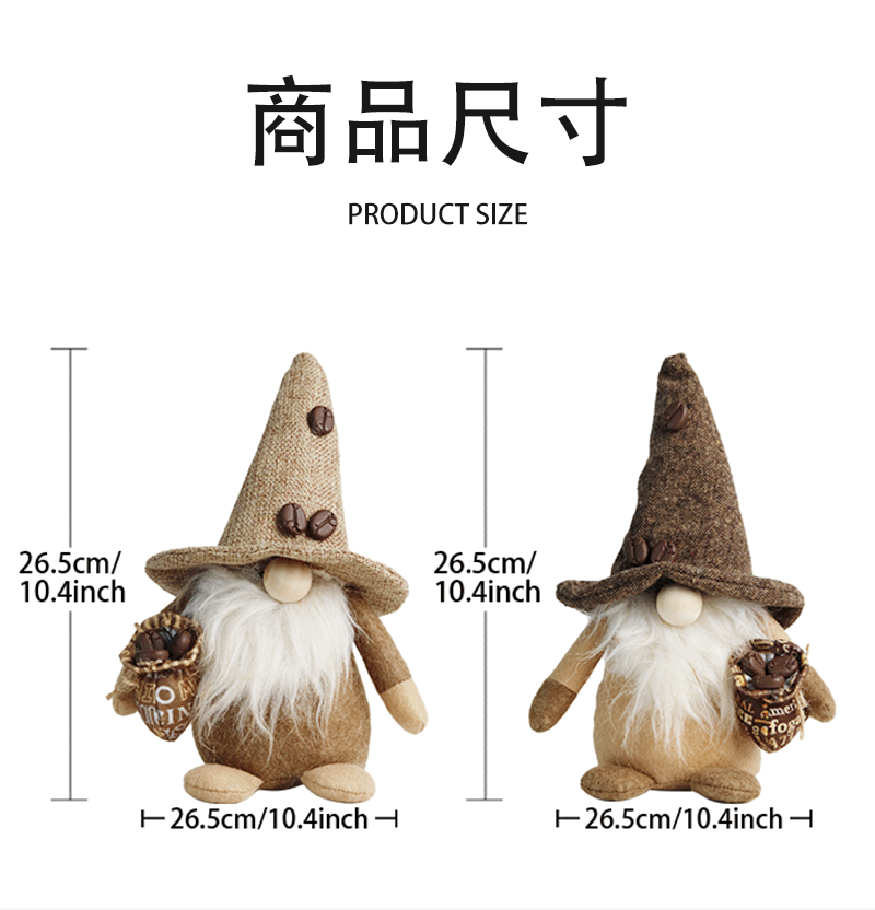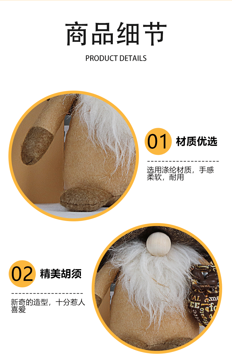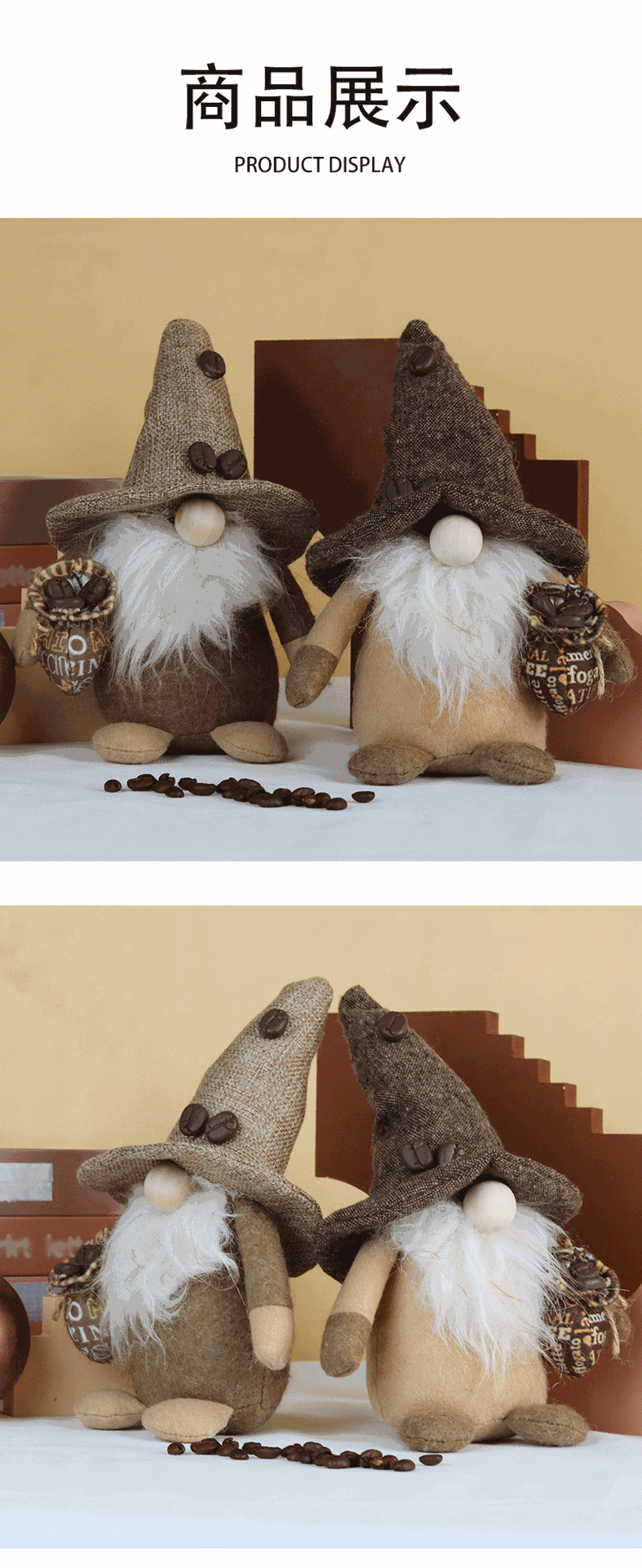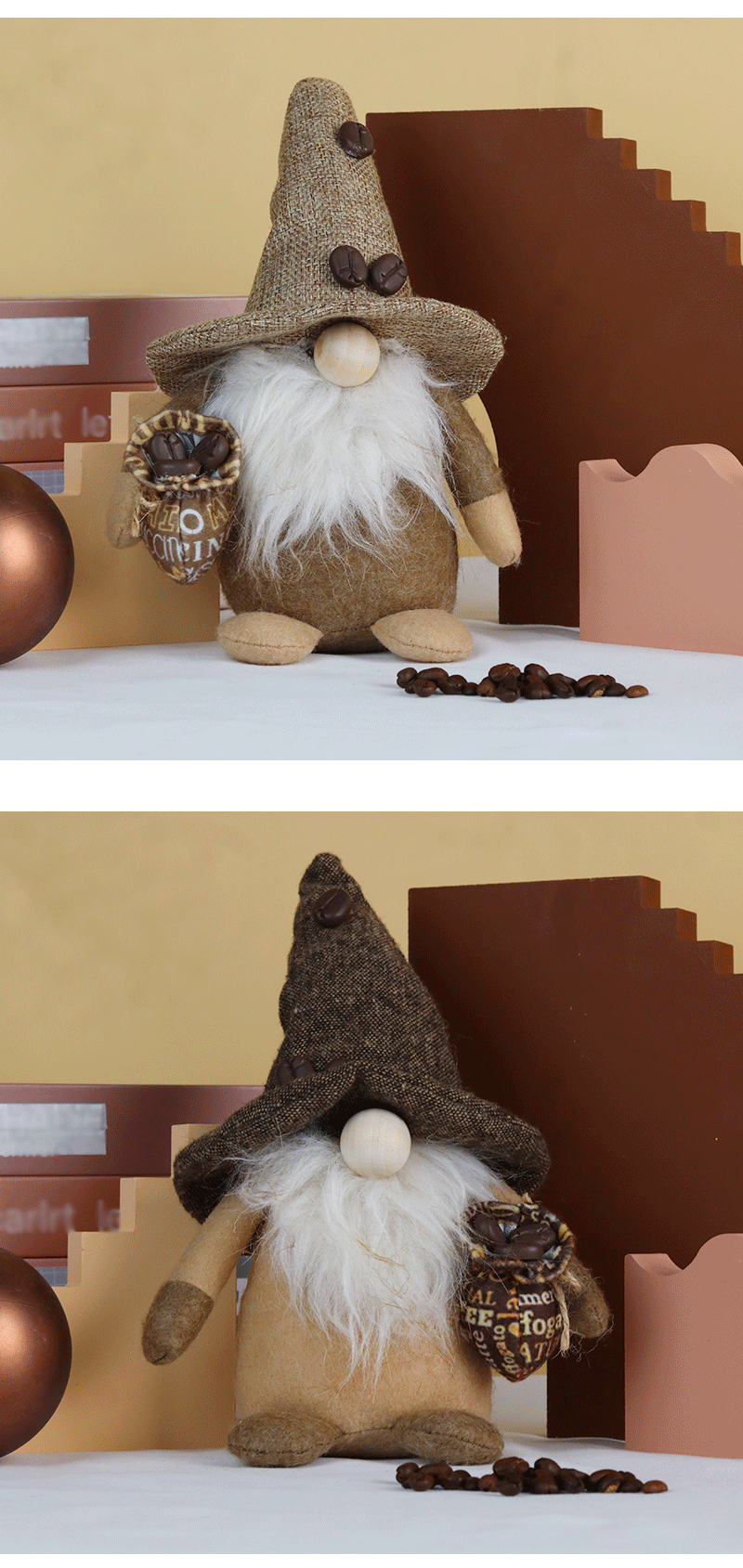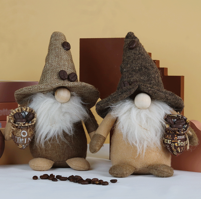 新しい家の装飾はコーヒーの小人の人形の顔のない人形の手でコーヒーの豆のルドルフの子供の装飾を持ちます。
