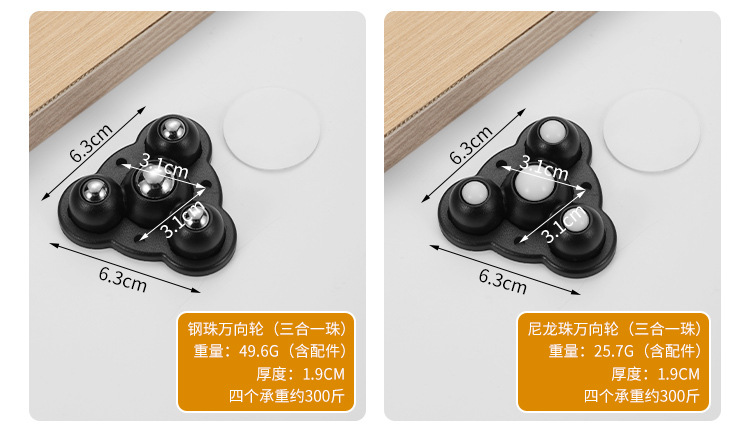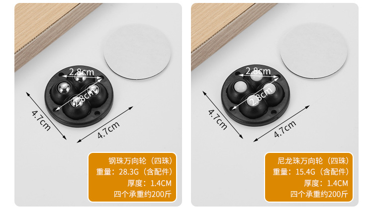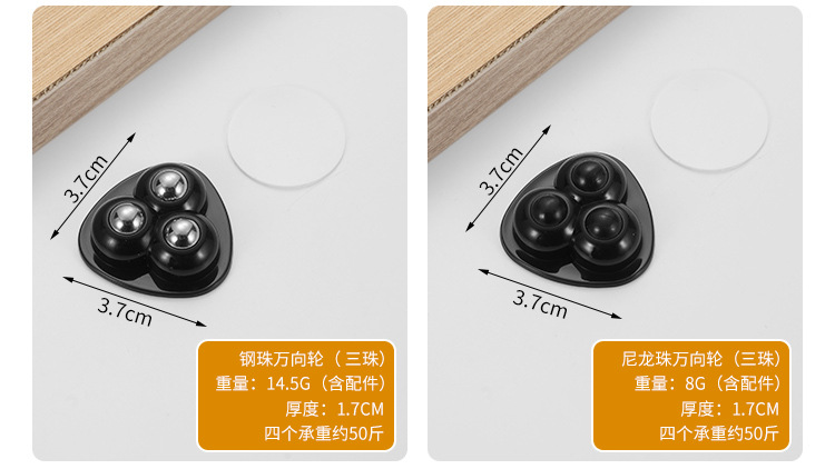 万向轮家具底部免打孔粘贴式滚珠滑轮家用五金承重通用脚轮可移动