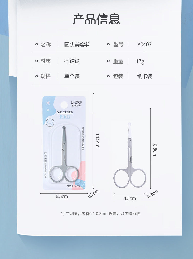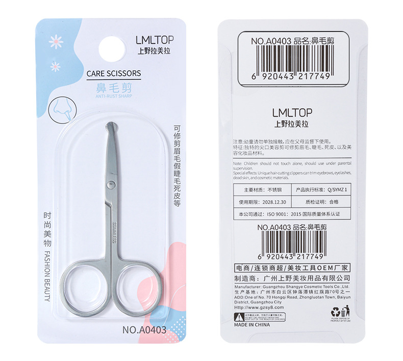 ラメラ鼻毛切りステンレス丸頭修眉切り美容はさみ眉切り化粧道具卸売りa0403