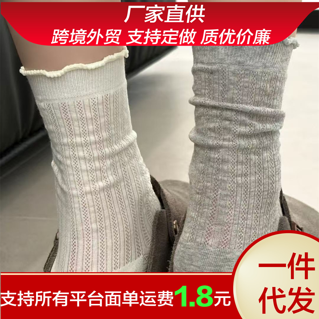 春夏の日本の薄いタイプのシンプルな少女のレースのスタッキングソックス韓国版insファッション純色の透かし彫りの中筒靴下