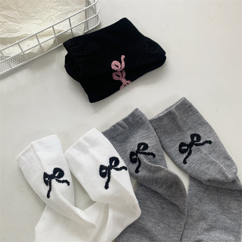 純欲風 "韓国の靴下の女性の大衆シリーズのかかとの蝶結びの靴下の中の筒の靴下の黒い白い灰色のinsの純綿の靴下