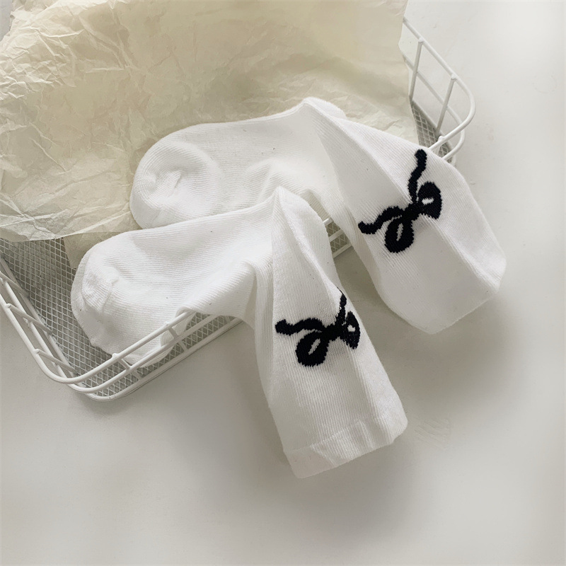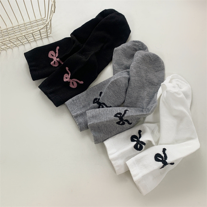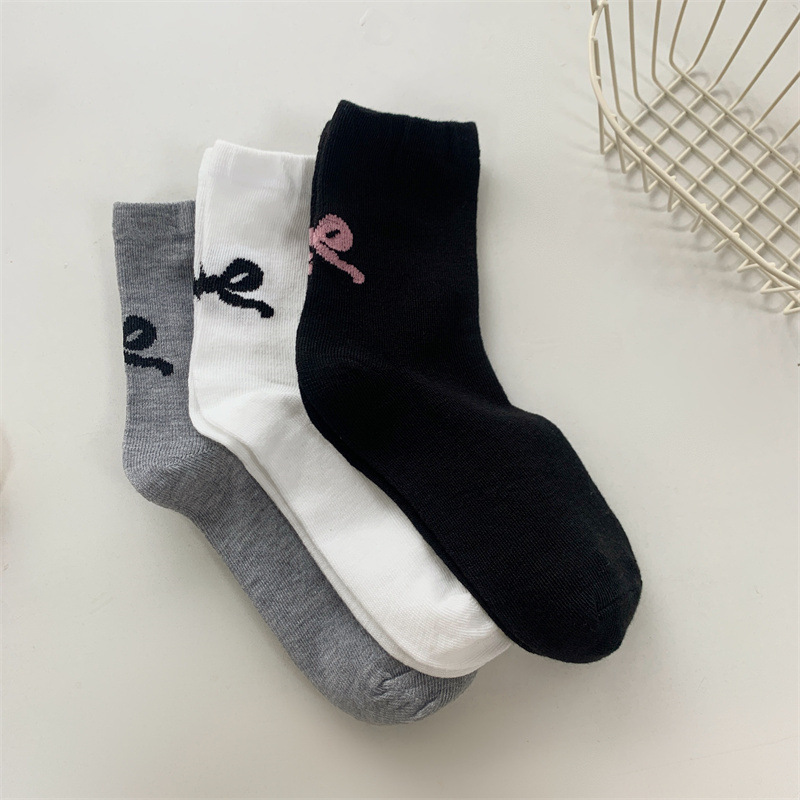 優しい蝶結び韓国ins女性スタッキングソックス日系かわいいバレエ風靴下黒白灰中筒防臭靴下