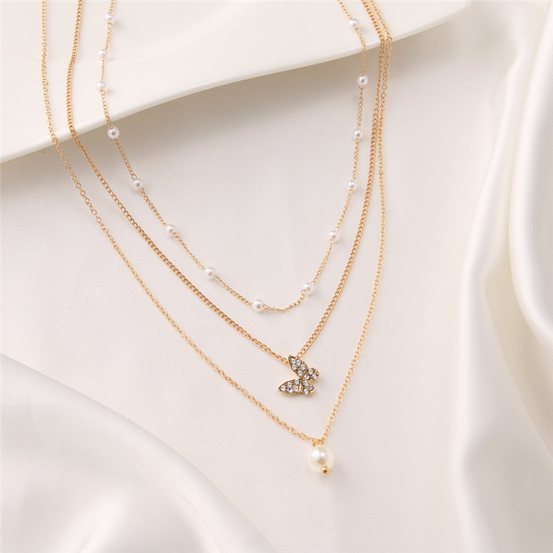 欧米の国境を越えた新製品は蝶真珠ペンダントネックレス女性の首鎖多層ins風首鎖をはめ込んでいる