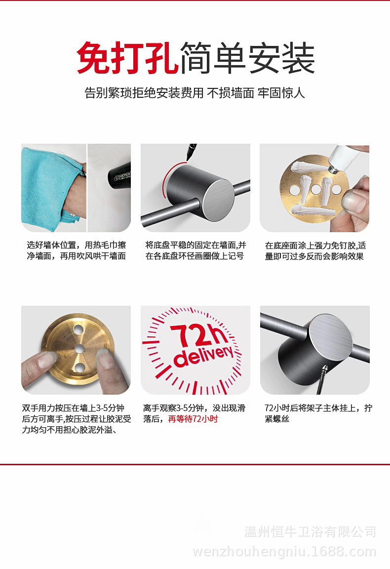 穴なしタオルラック304ステンレスバスタオルラック浴室棚モップラックトイレタオルバー単棒