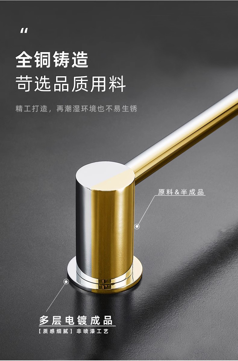 全銅製タオル掛けペーパータオルホルダー、ミニマリストタオルバー、バスタオル壁掛け、軽奢風バスルームハンガー、ワンピースバー