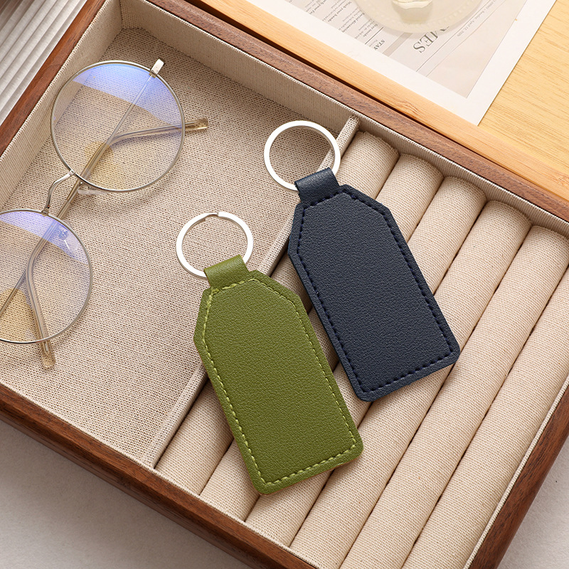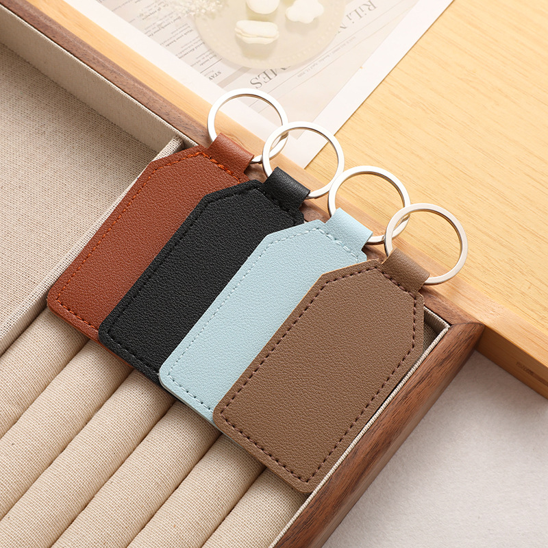 クロスボーダーpuレザーキーホルダーファッションシンプル角型レザーバックル印刷可能ロゴ革ストラップ男女キーホルダー