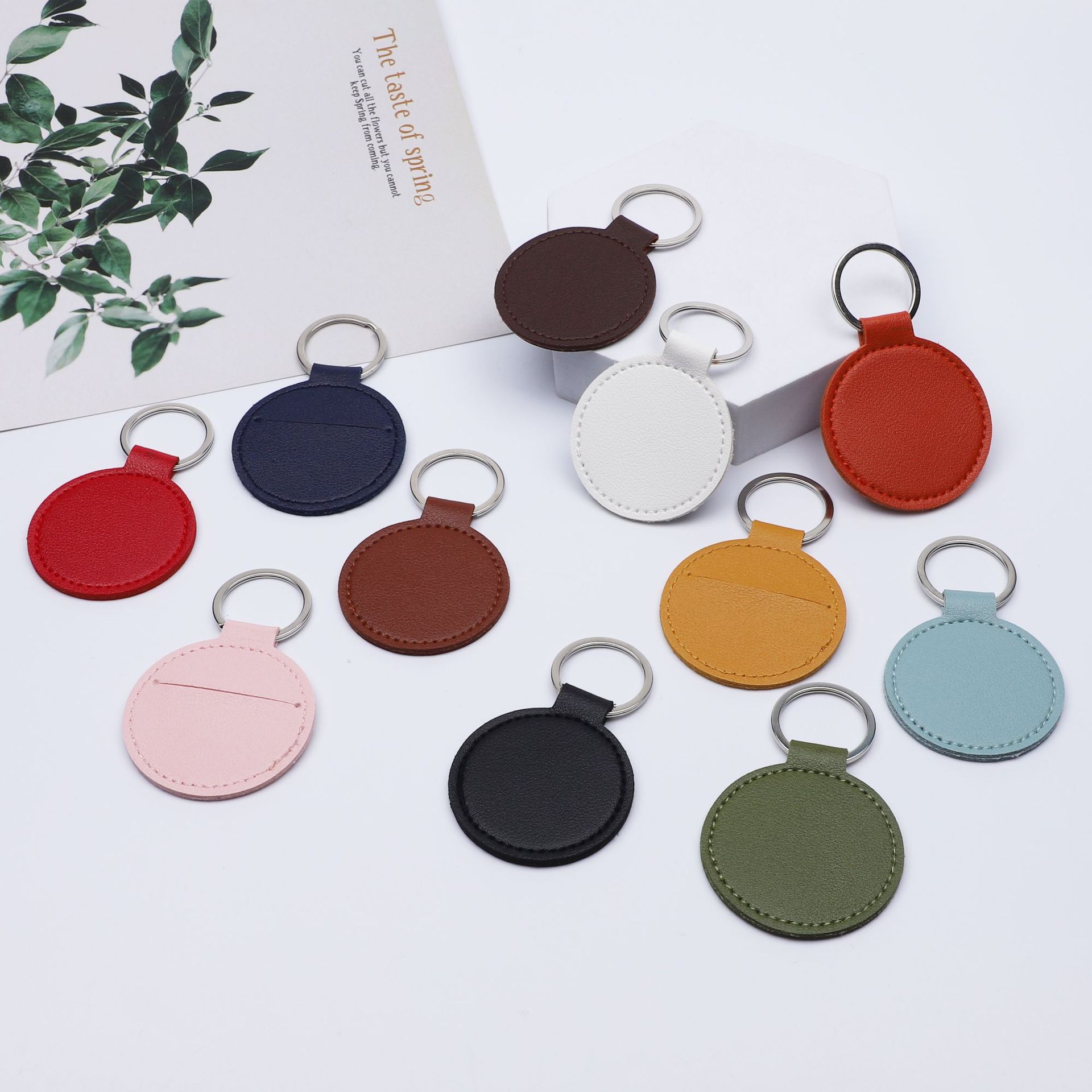 ラウンドPUレザーキーホルダーアクセサリー金属キーホルダーストラップロゴ印刷卸売代理加工
