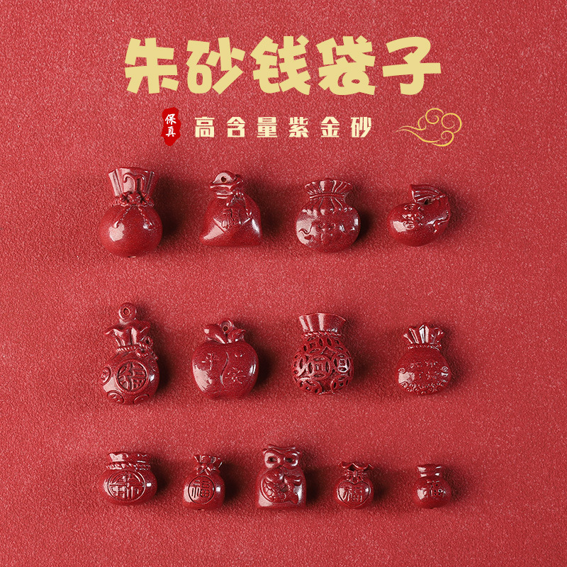 原鉱高含有量朱砂銭袋福字DIY部品散珠紫金砂ペンダントペンダント