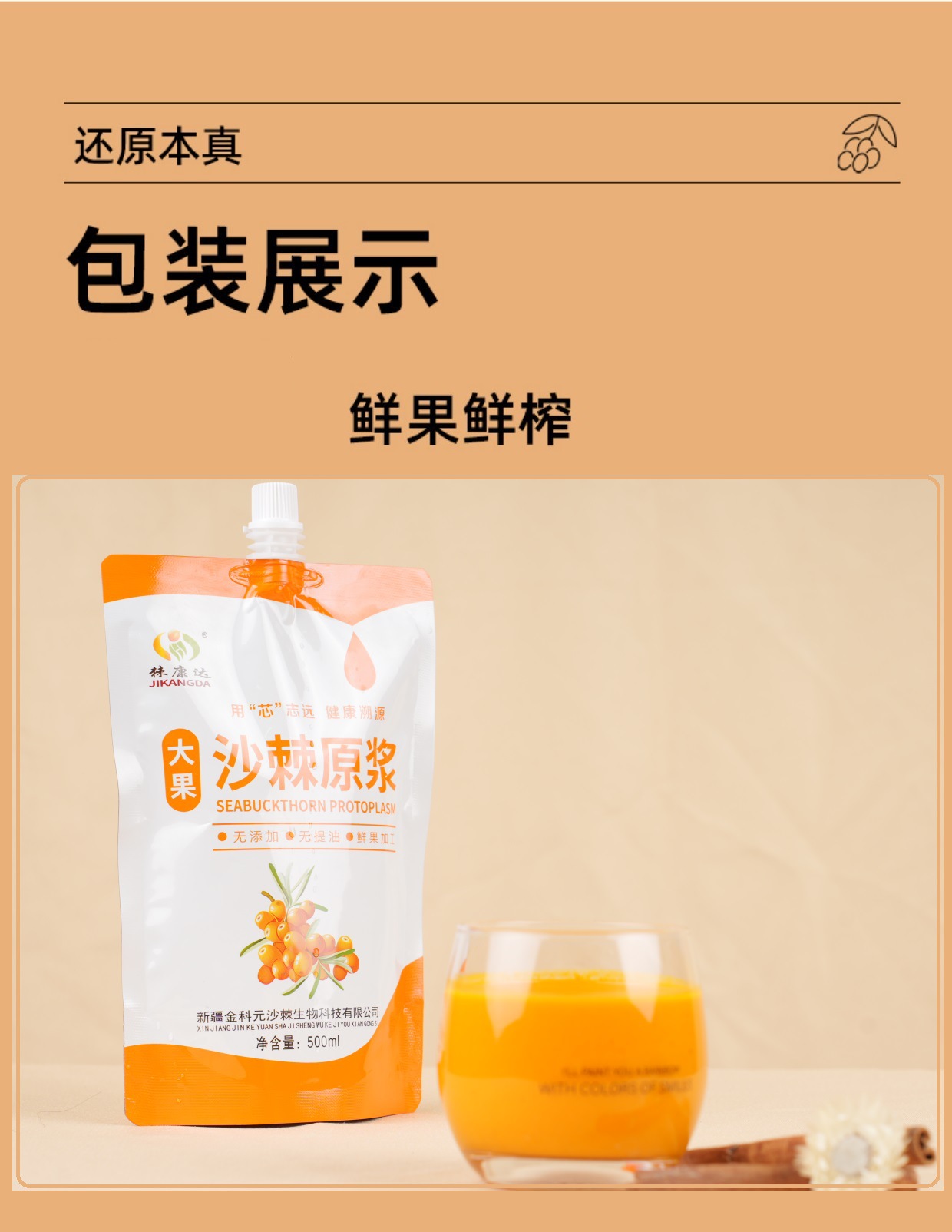 新疆大果沙棘原パルプ500ml金科元沙棘原パルプ生果新鮮搾りゼロ添加正品特産品