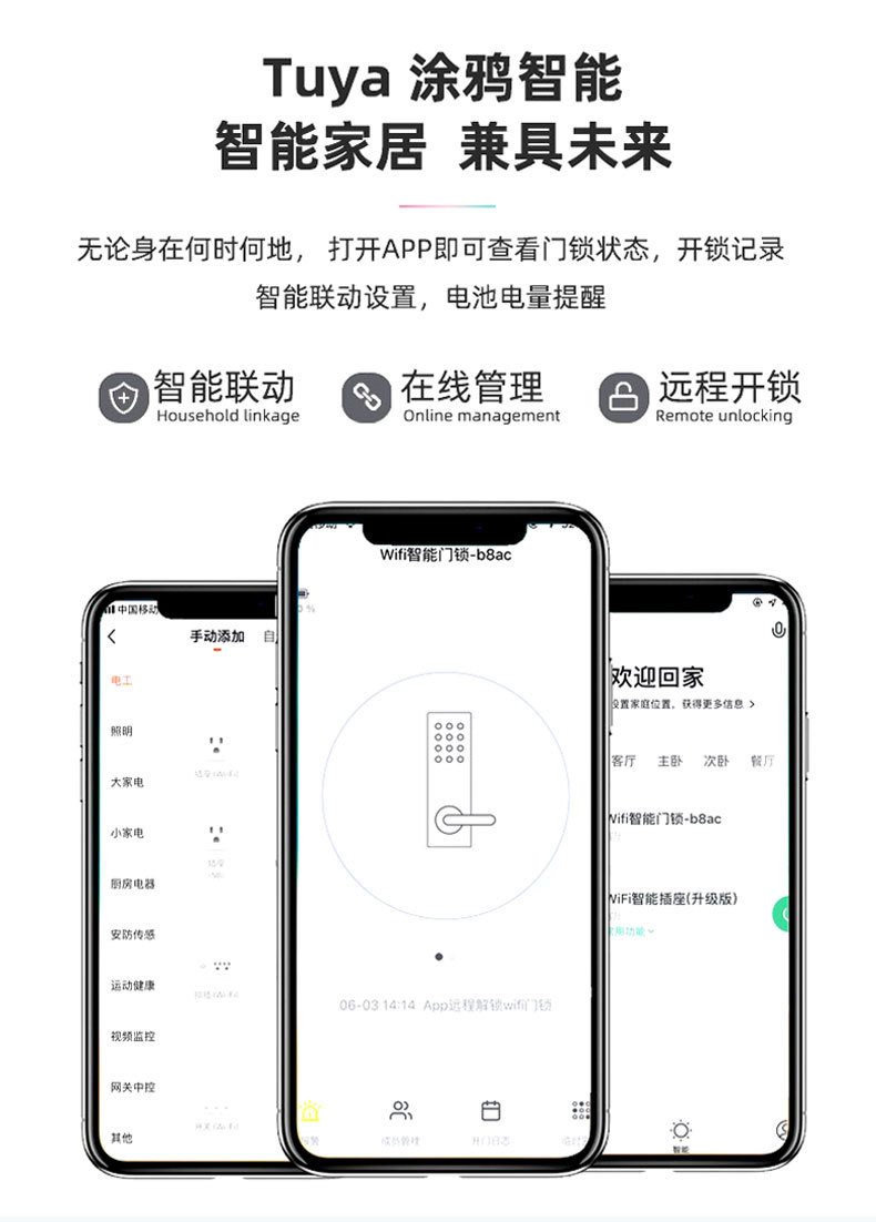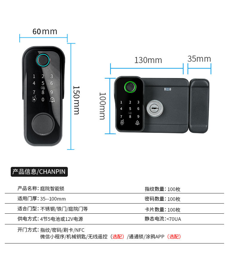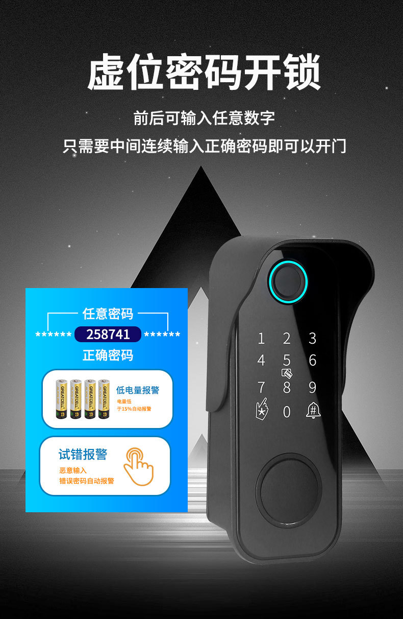 庭のドア指紋ロック屋外通通ロック落書きパスワードロック鉄門牛頭ロック両面検証スマートロック現物