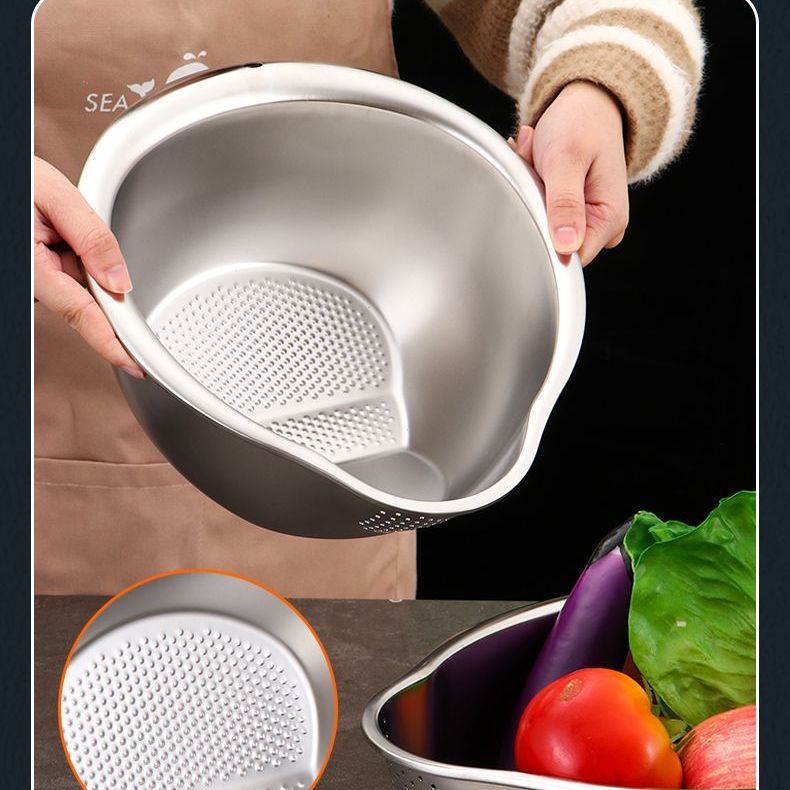 ステンレスのたらいの水たまりのかごの米の神器の米を洗うふるいの家庭用の台所の野菜を洗う専用のたらいの濾過のかご