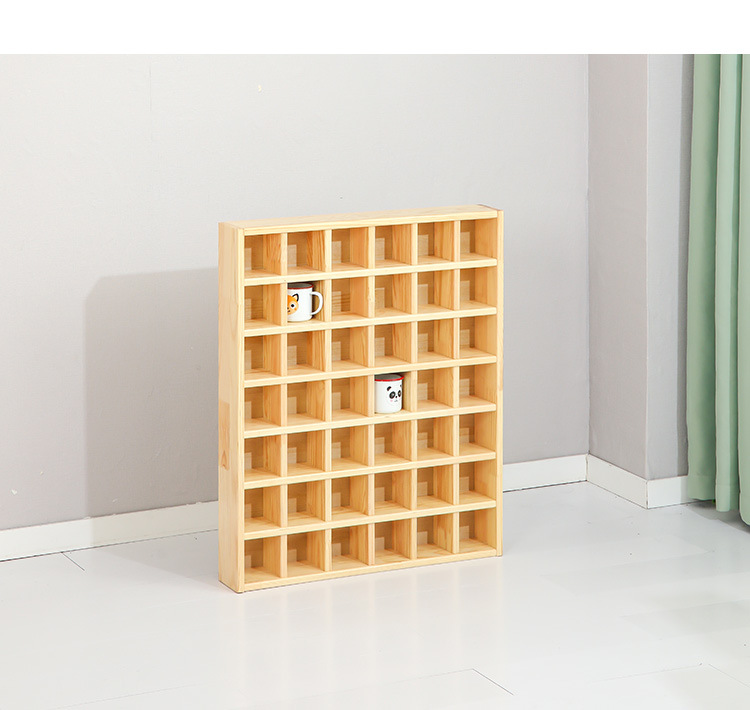 幼稚園の口の杯の棚の実木の口の杯の棚の子供の木製のお茶の杯の棚のお茶の戸棚の木製の水の杯の棚は扉を持って壁を掛けます