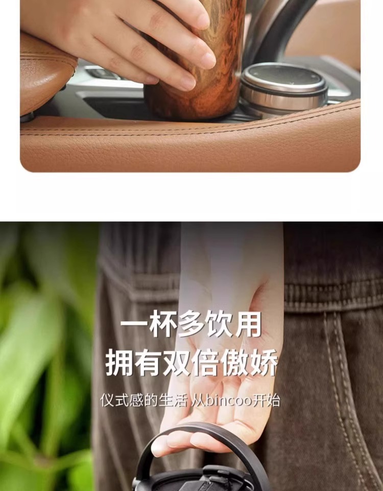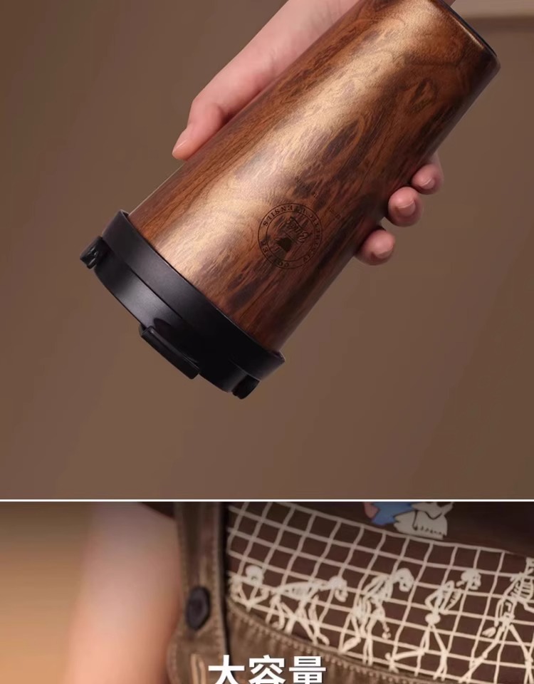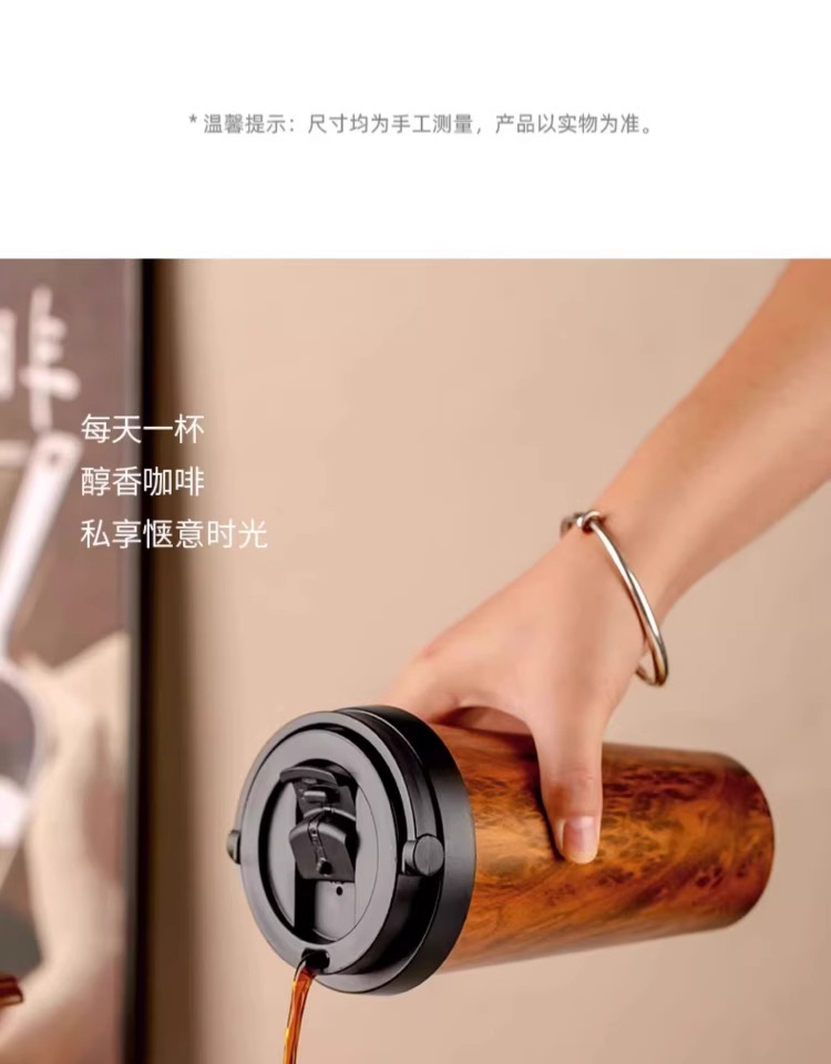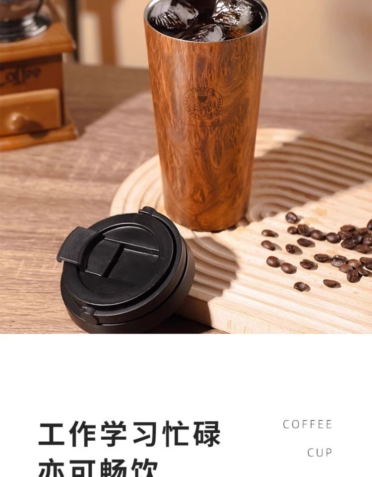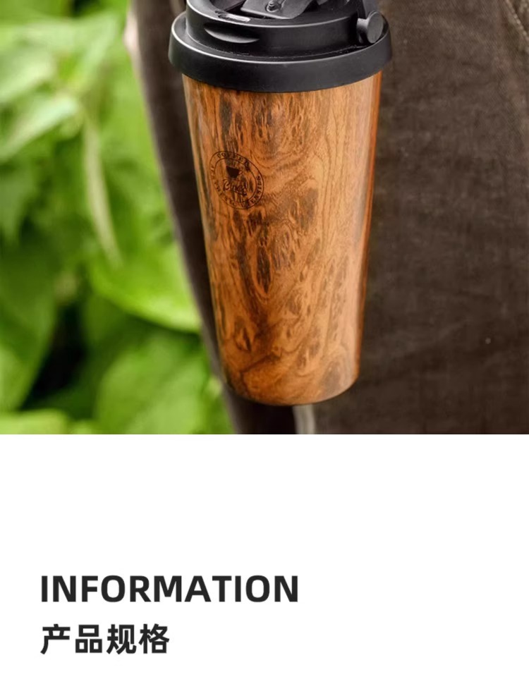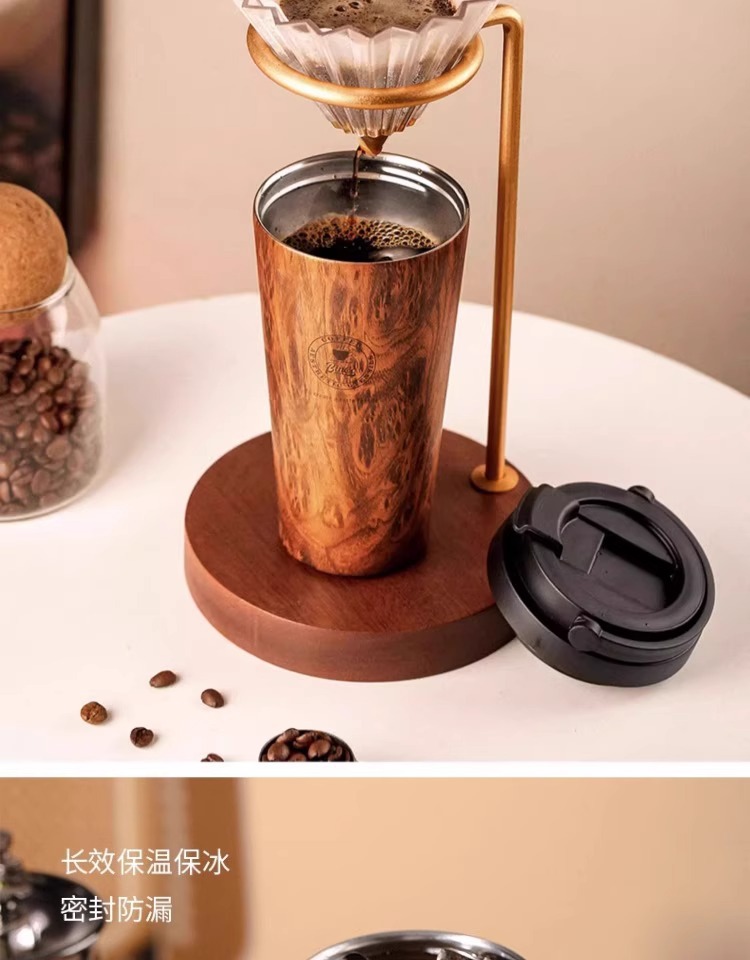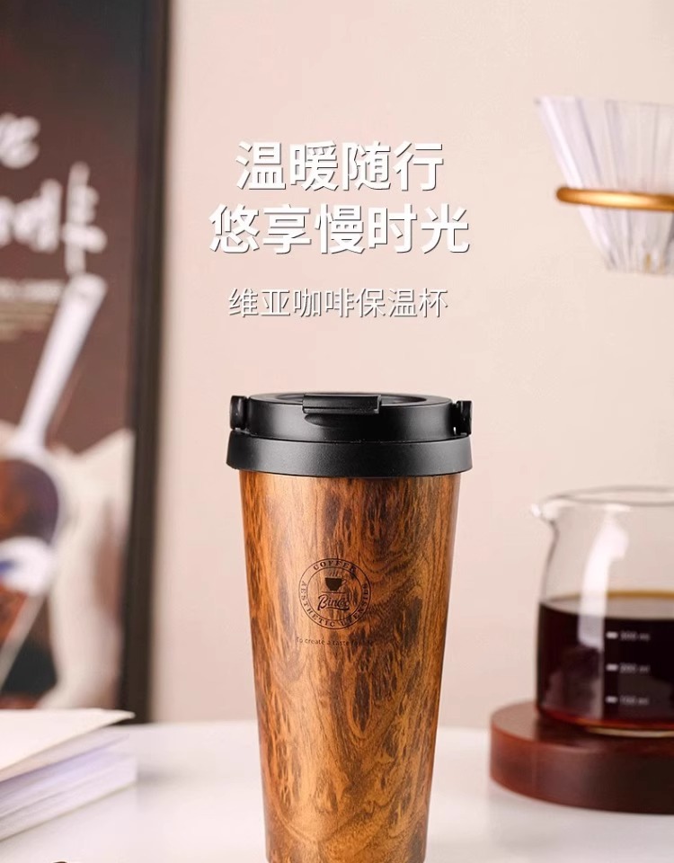 Bincoo复古咖啡杯木纹新款保温杯车载男士便携挂耳咖啡随行杯水杯