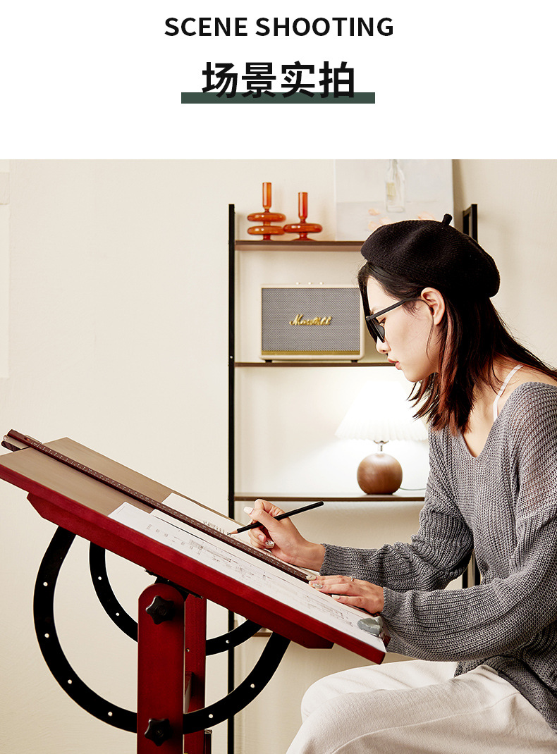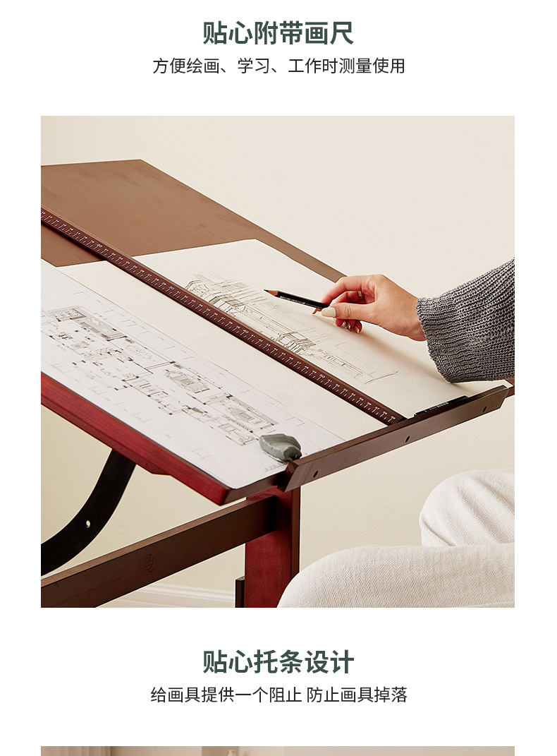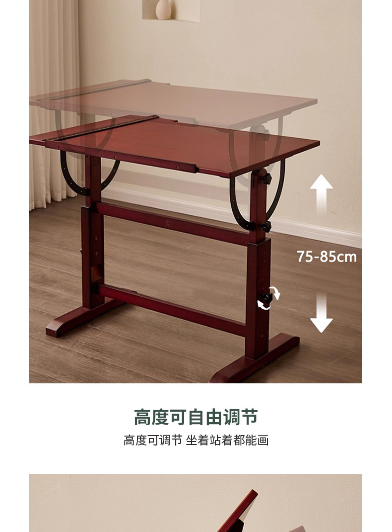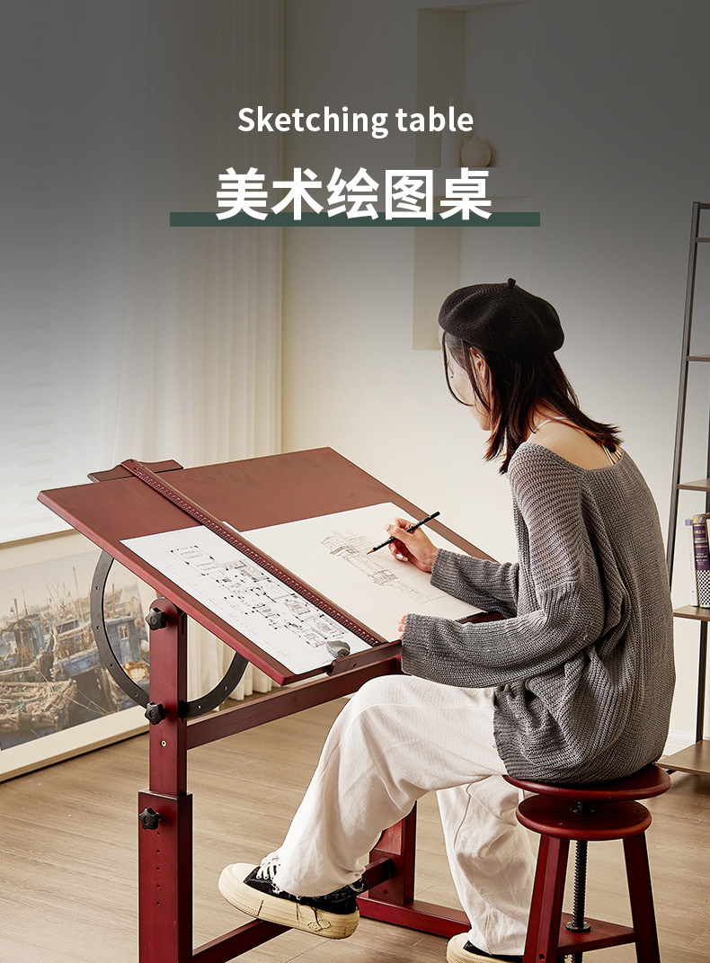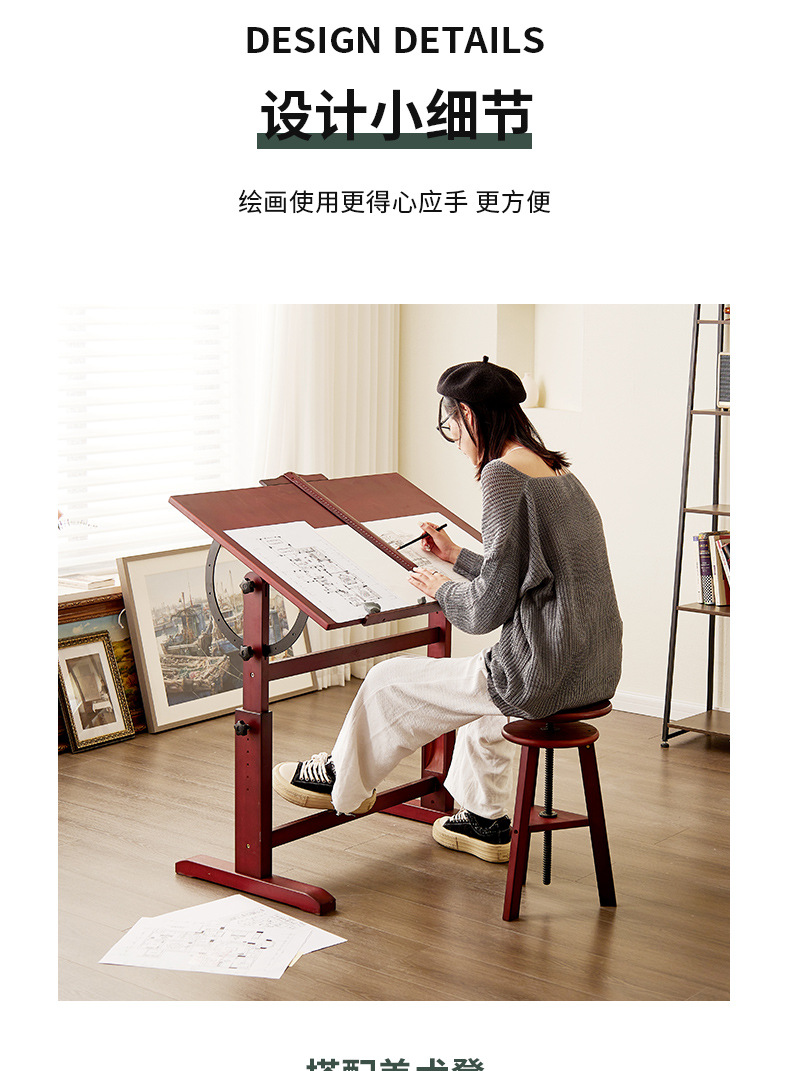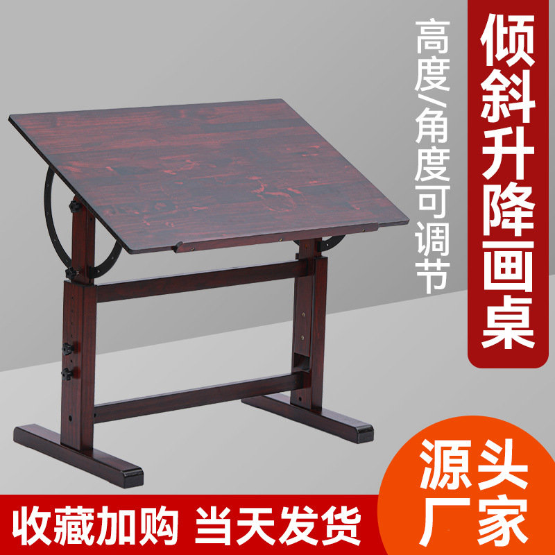 美術製図テーブル実木絵画作業台高さ調節可能傾斜昇降デザイナー工程製図テーブル