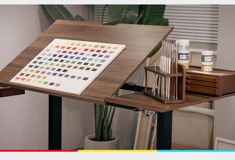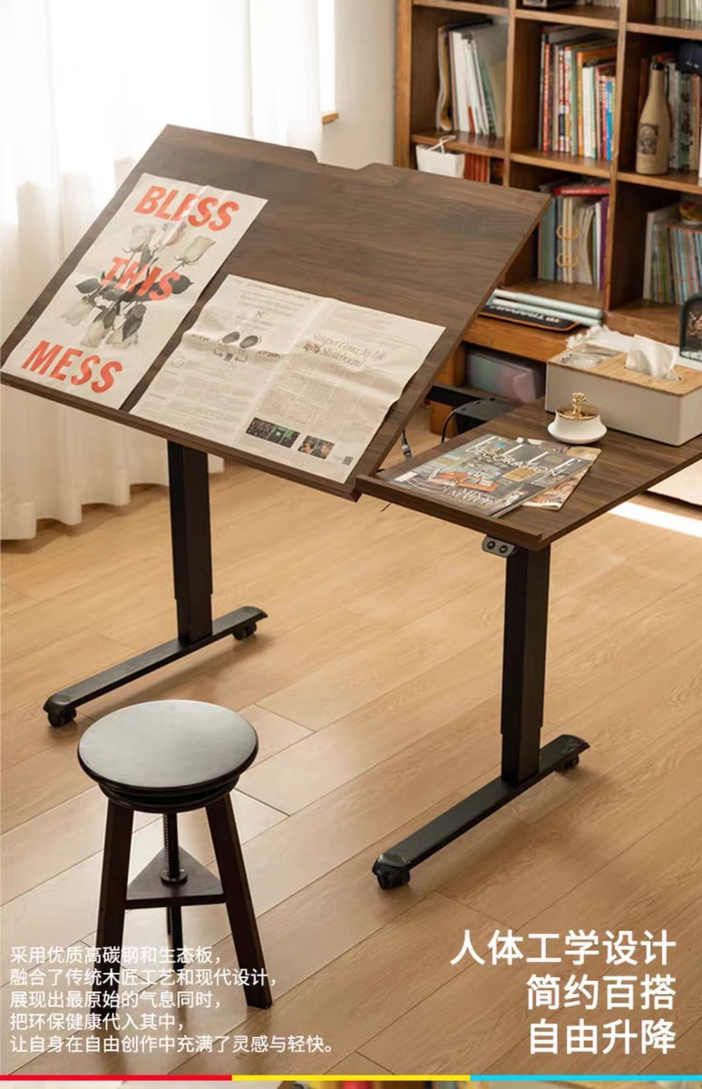 実木昇降画卓黒胡桃美術製図テーブルは昇降美術製図テーブルデザイナーの作業テーブルを調節できる