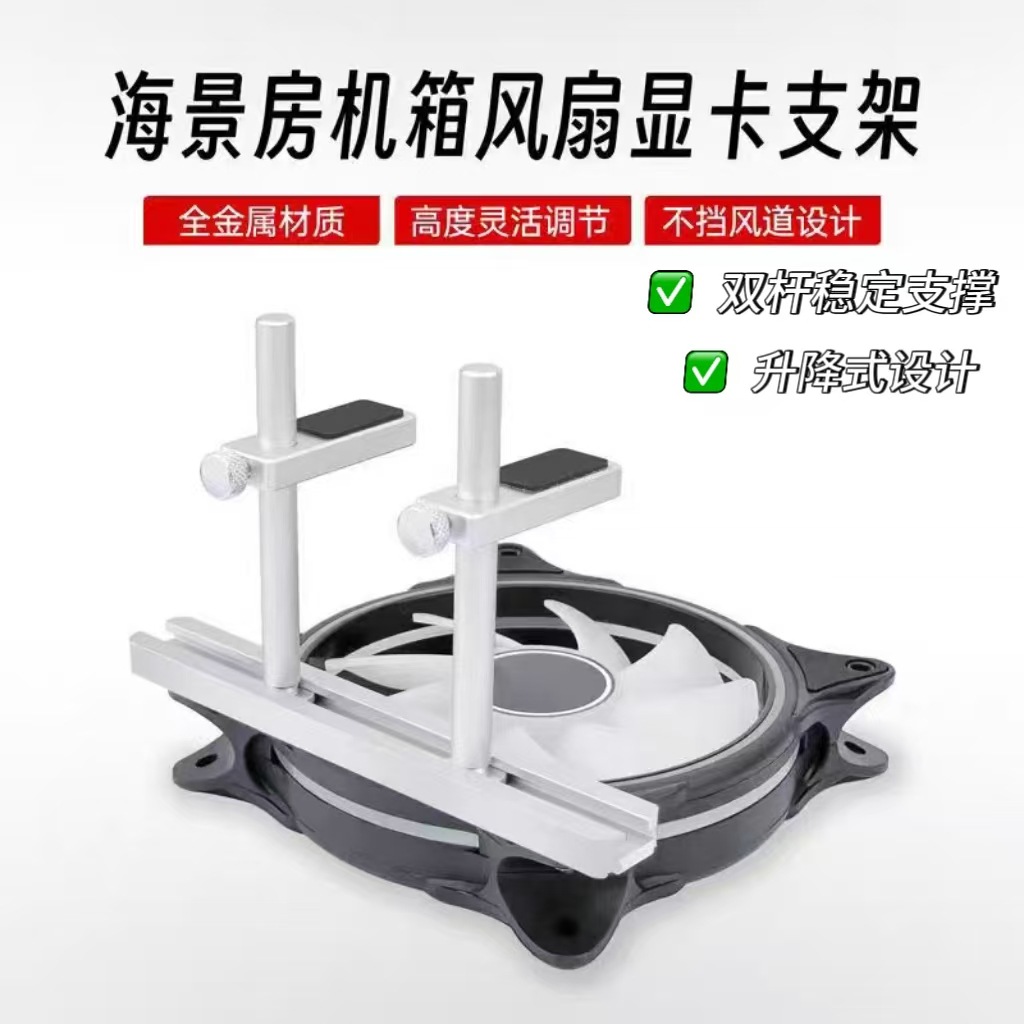 ファンスタンド、ケース用二重支柱安定サポートフレーム、コンピューターマザーボード昇降式PCアップグレードアクセサリー、冷却用メインフレームケース