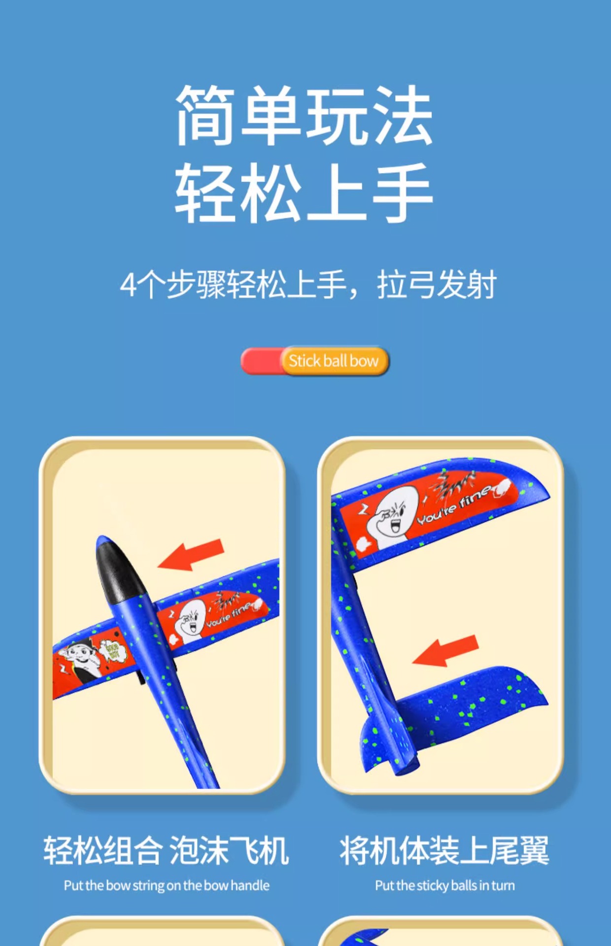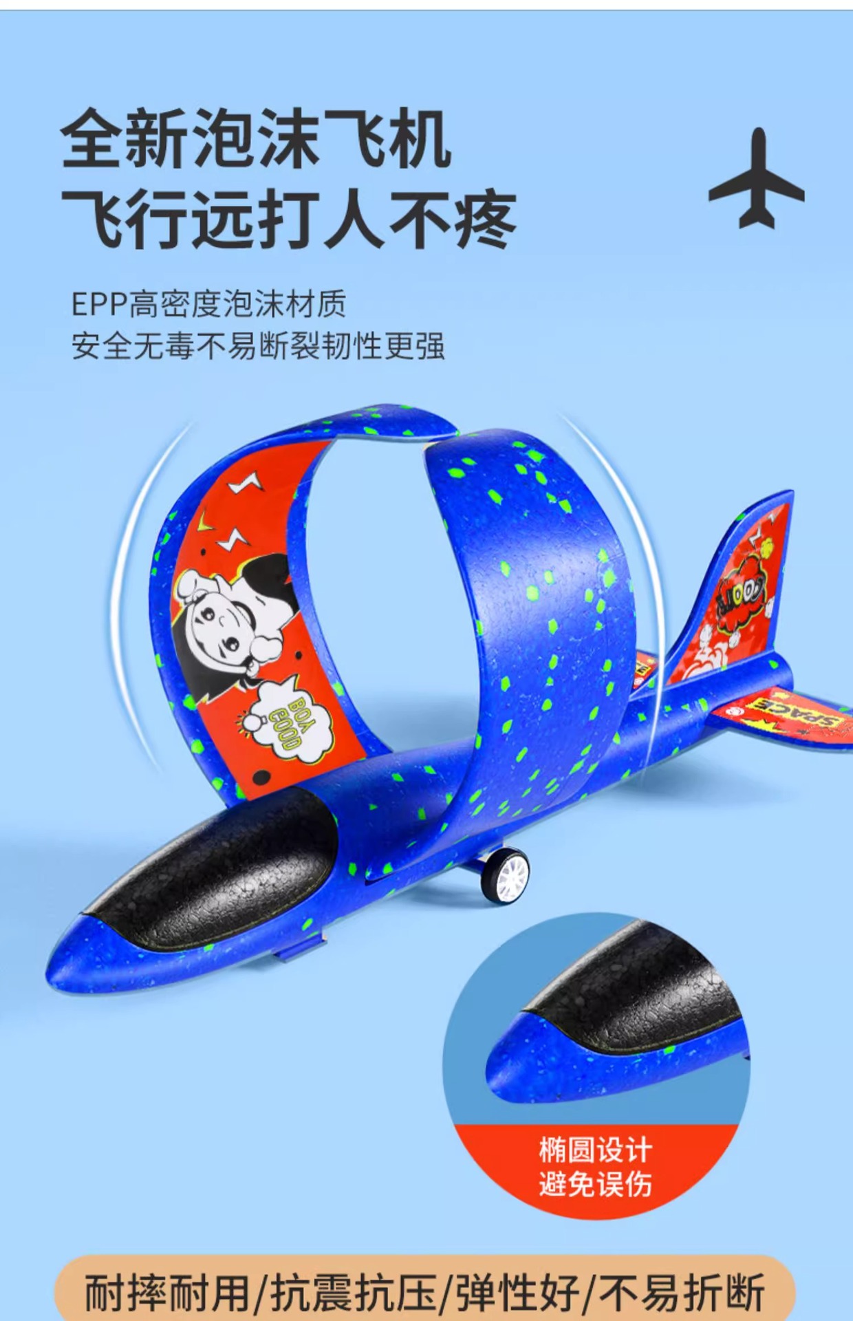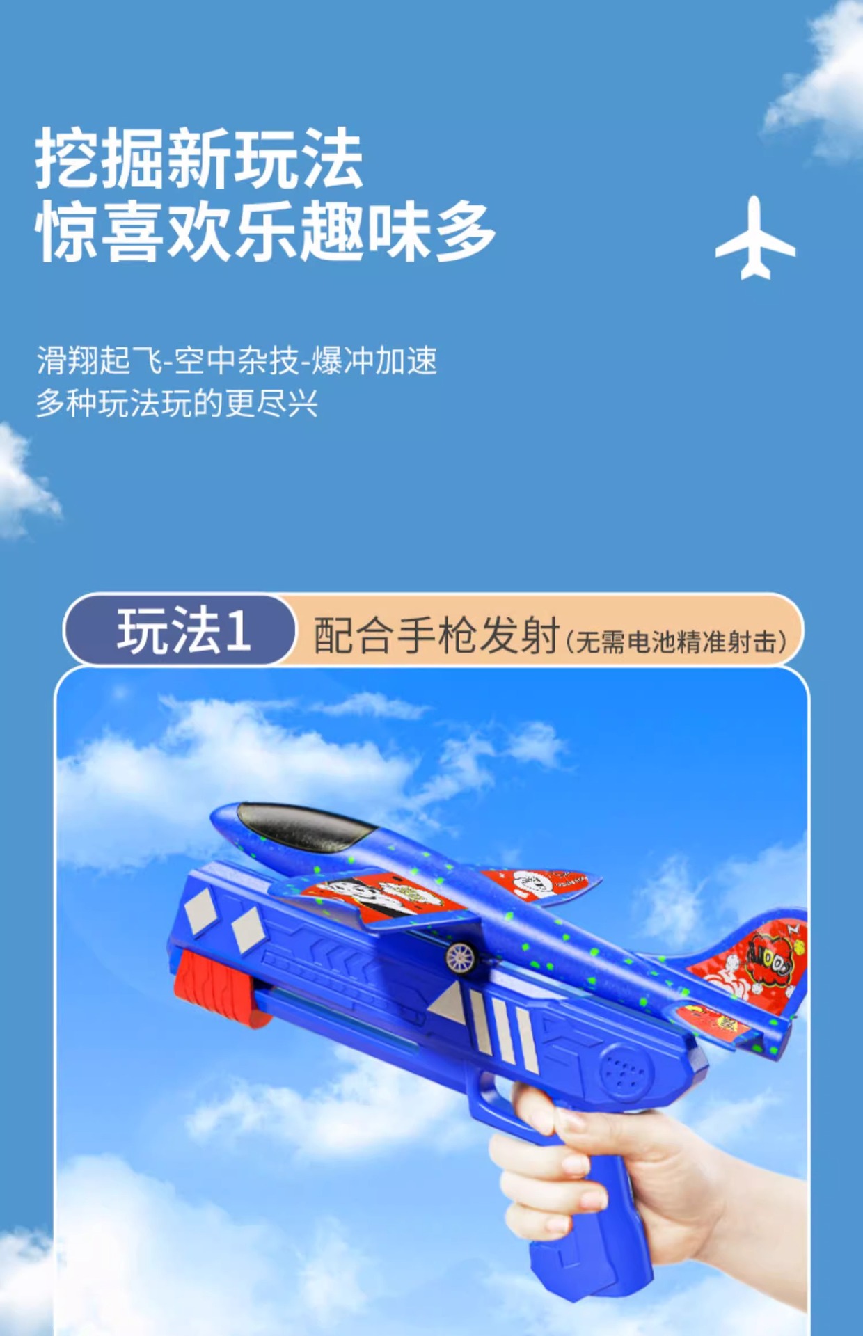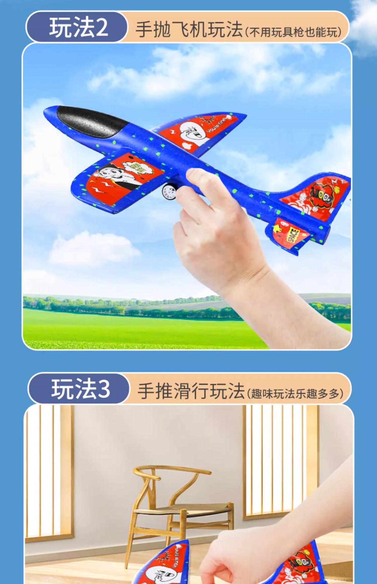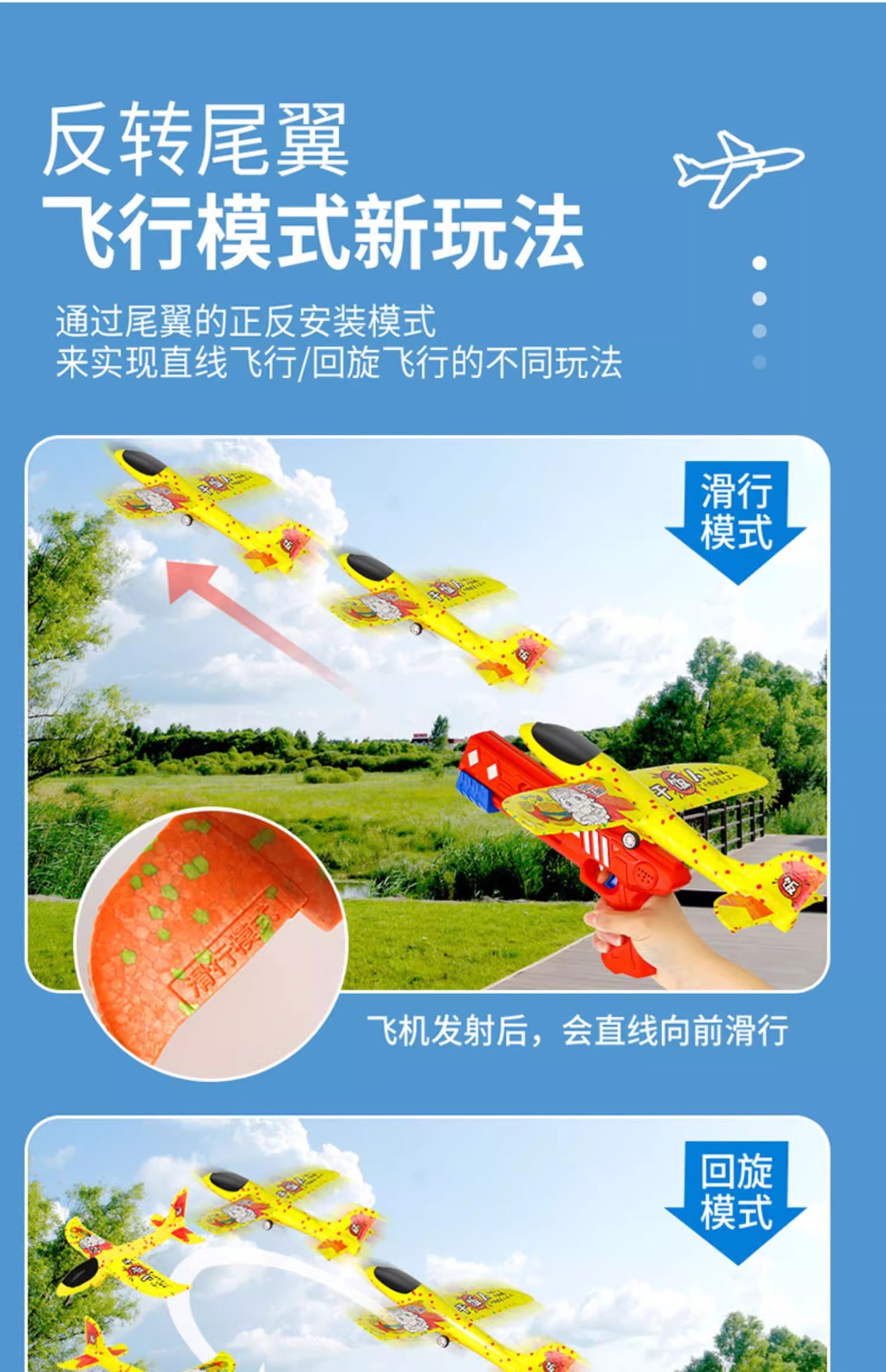 【弹射泡沫飞机】发射枪男孩男童户外运动手抛飞天滑翔机小孩儿童