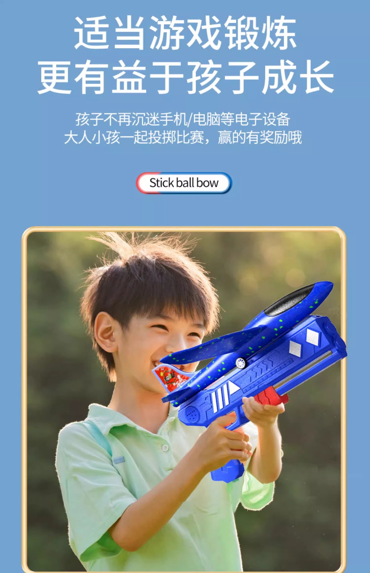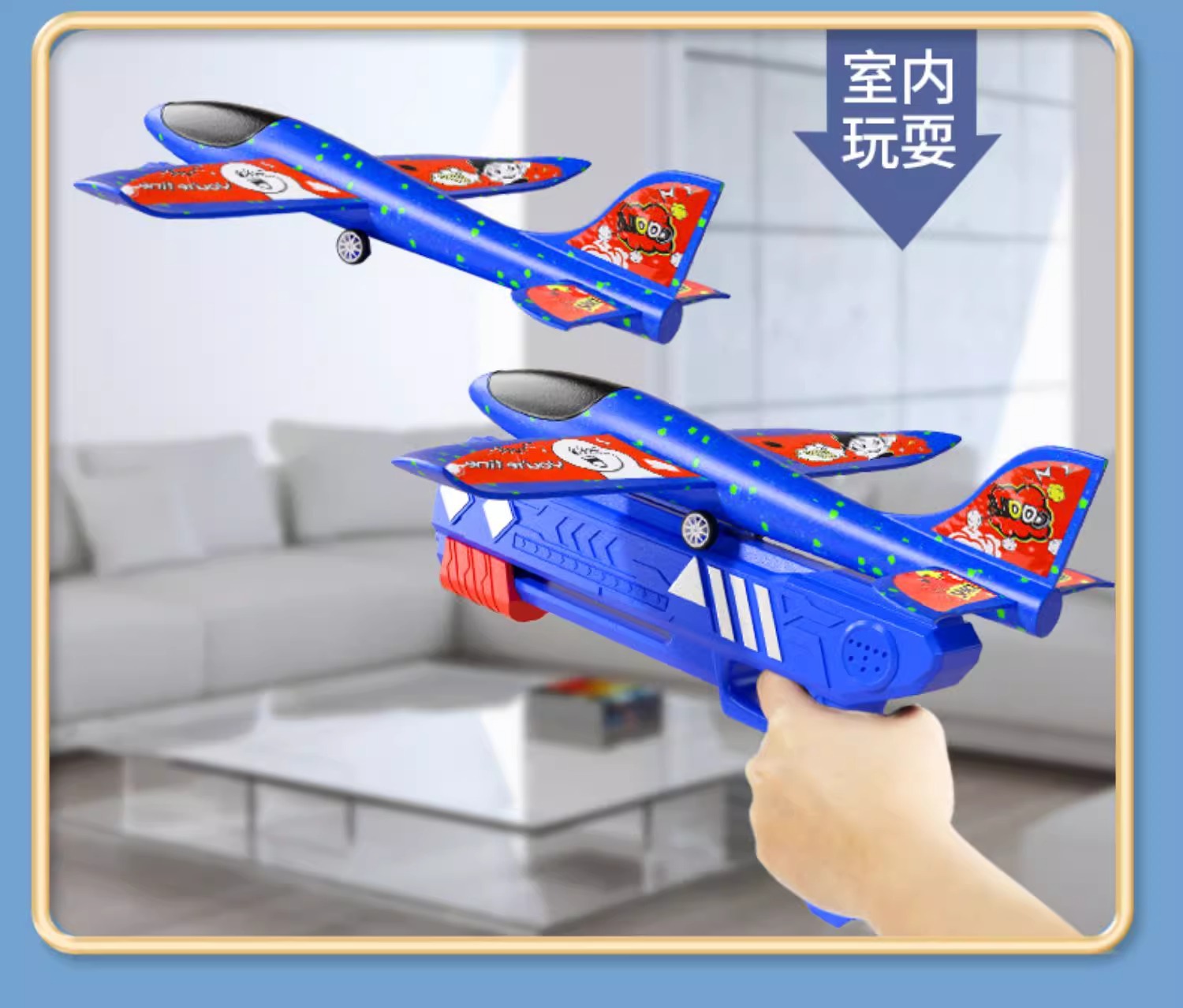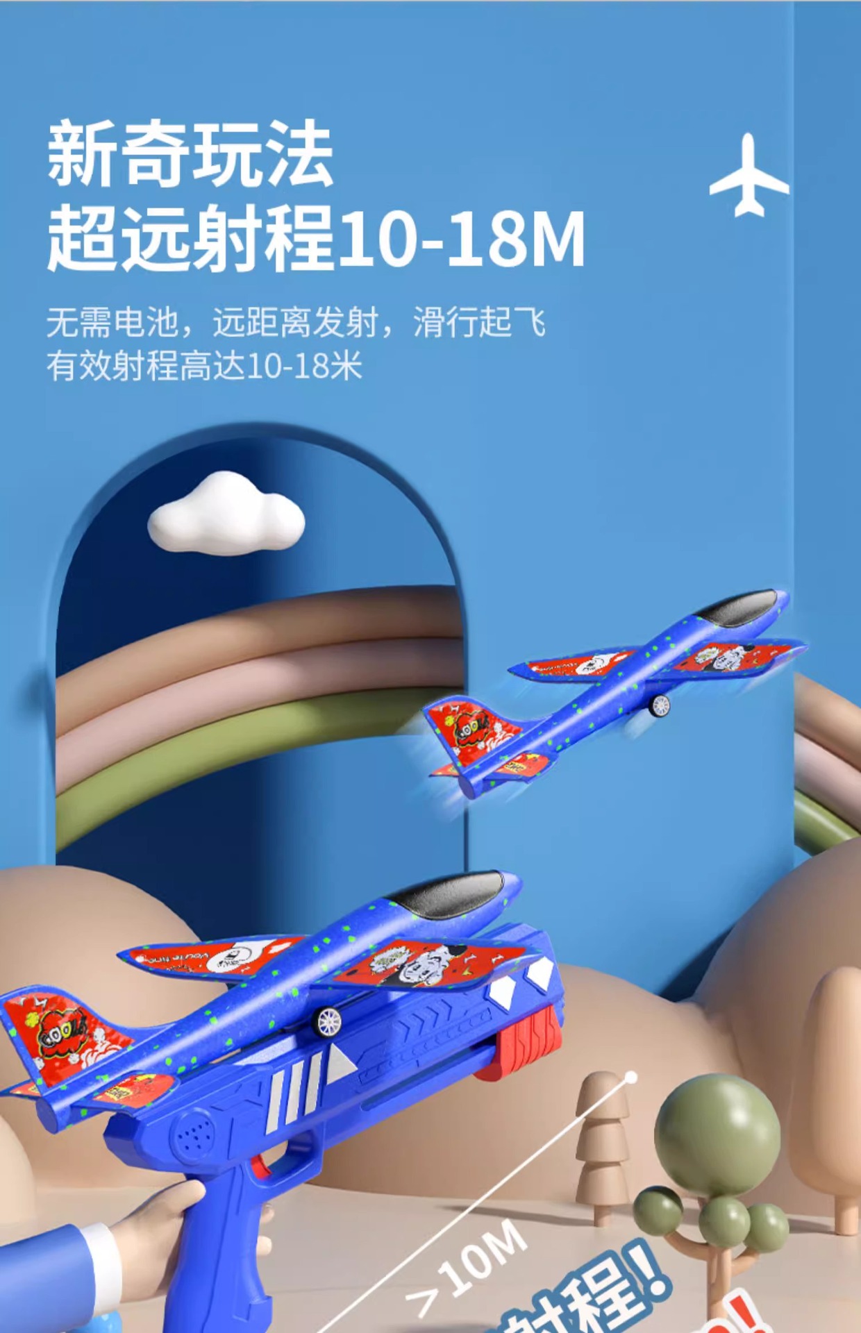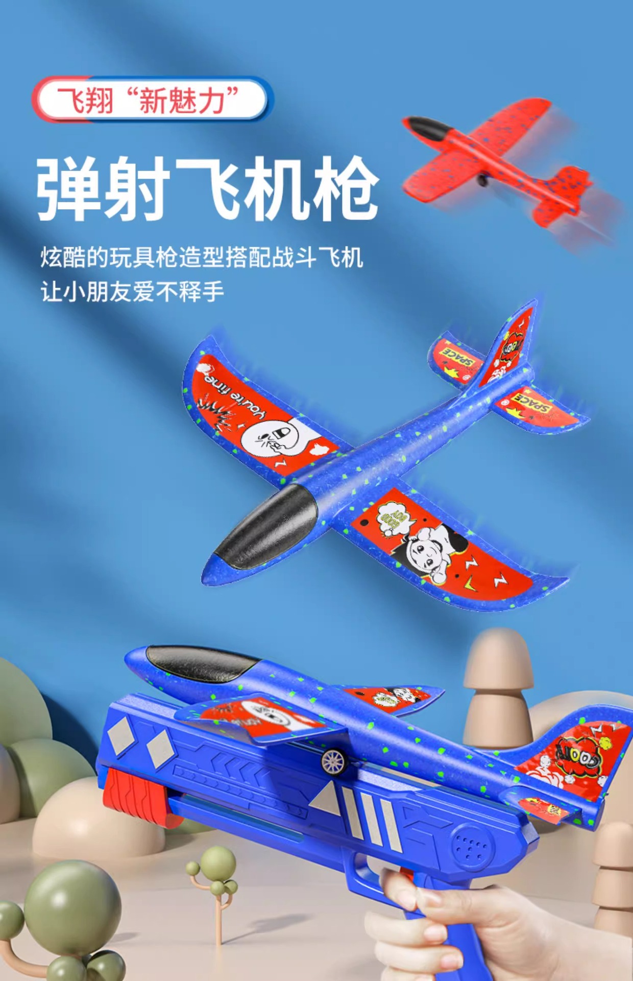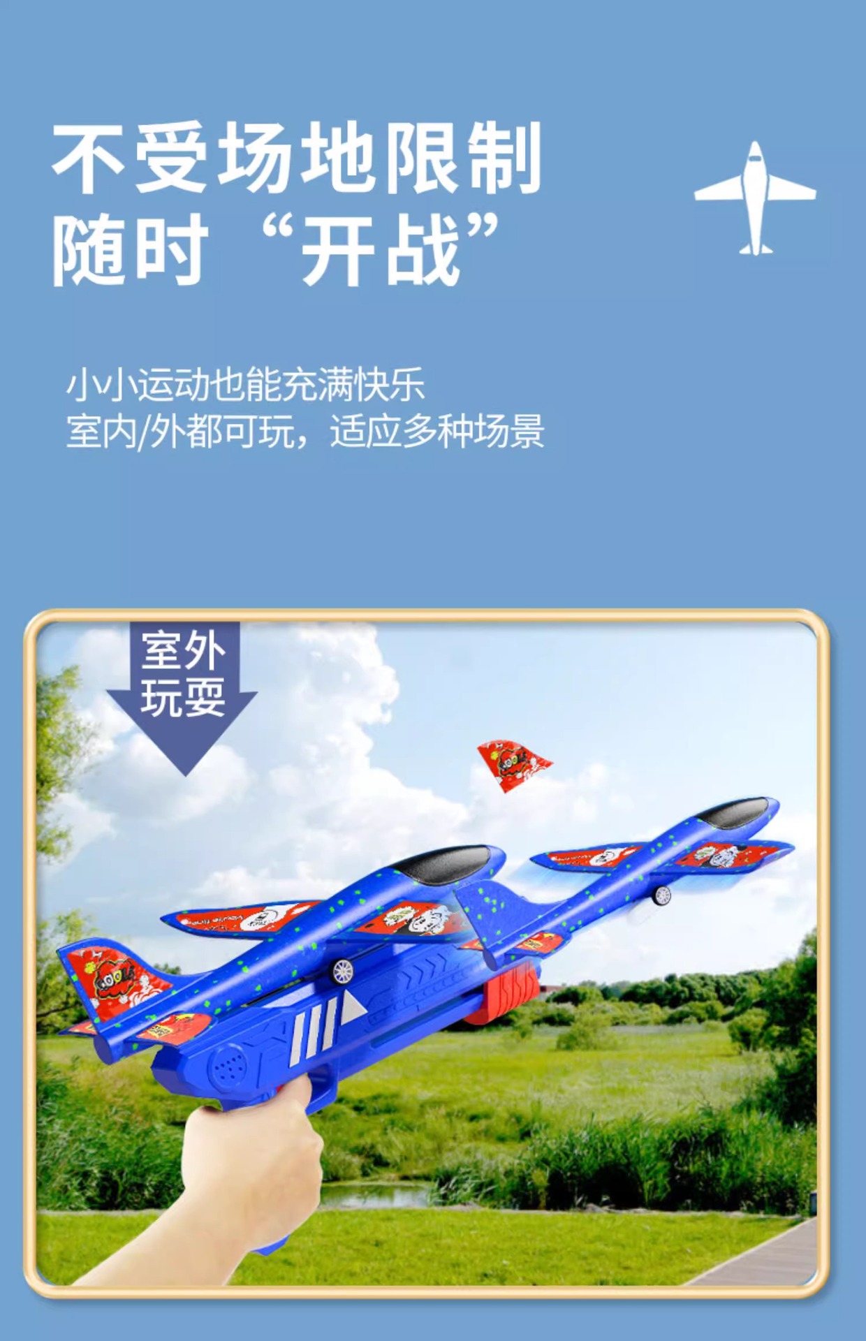 网红爆款弹射泡沫飞机手持发射枪手抛儿童飞天户外运动玩具小男孩