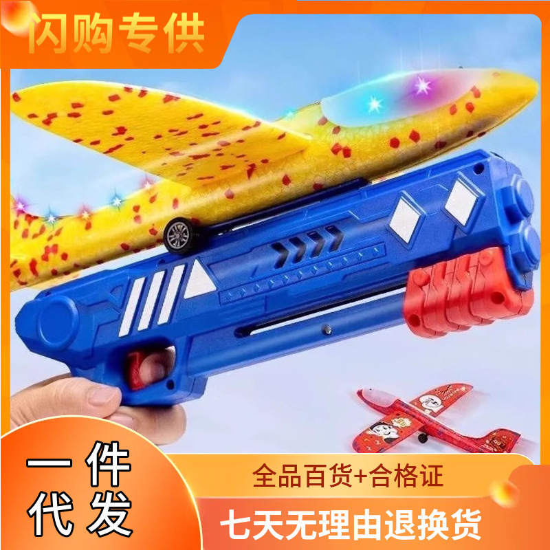 クロスボーダー爆射飛行機銃発光手投げ泡飛行機子供屋外スポーツ露店玩具卸売り