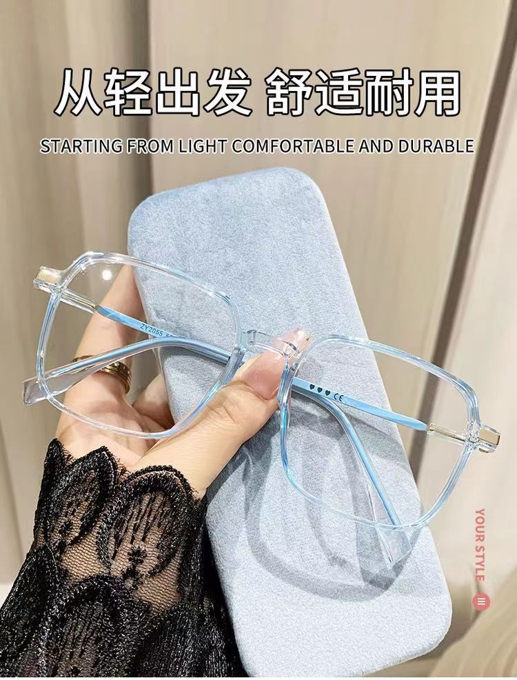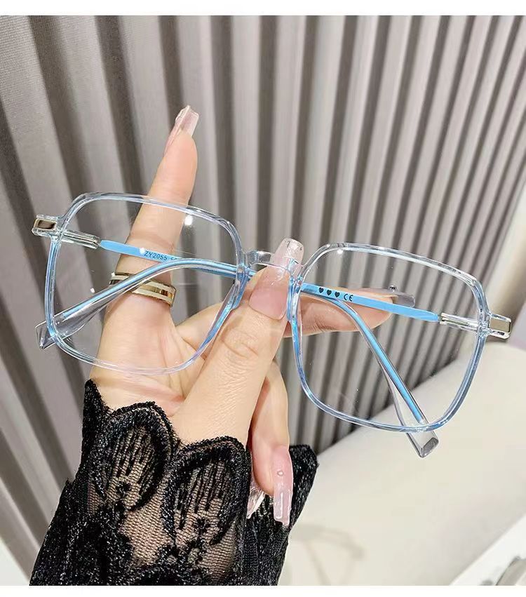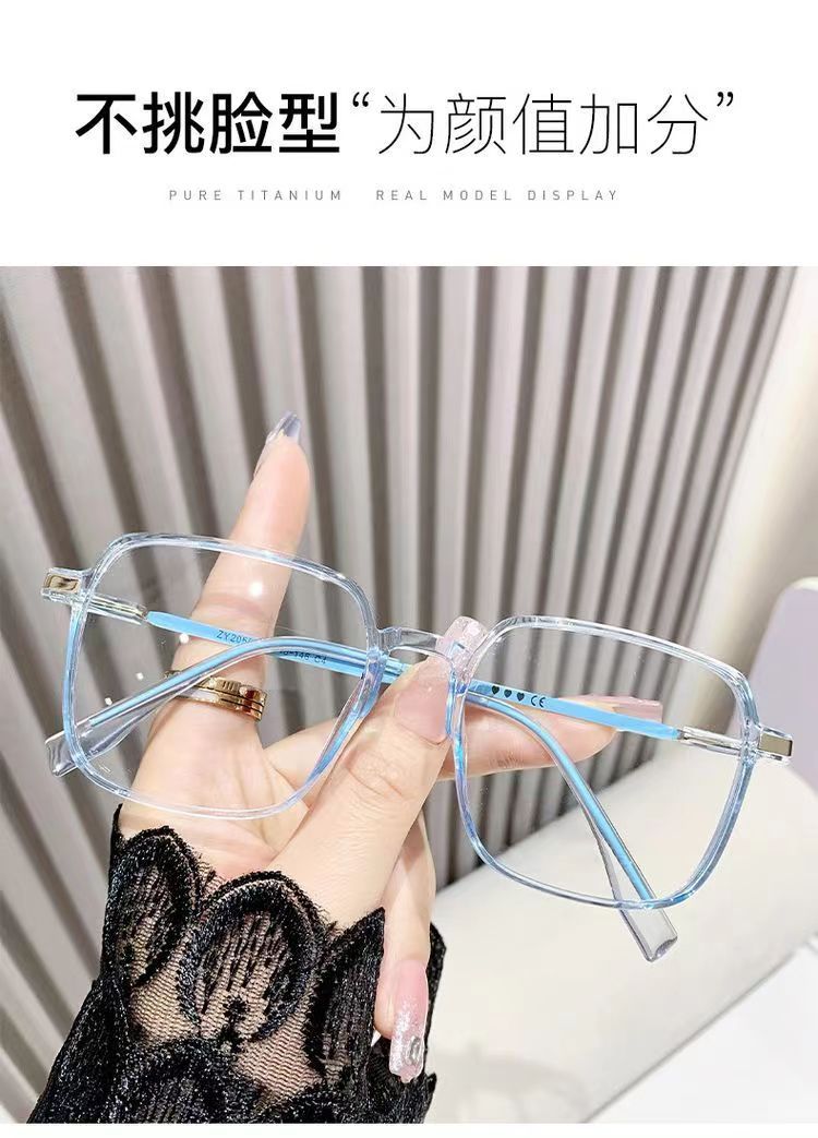 新しいファッションの青い光の大きい枠の平光の鏡の女性のネットの赤いすっぴんの百合の大きい顔はやせている完成品の近視眼の鏡の枠を現します。