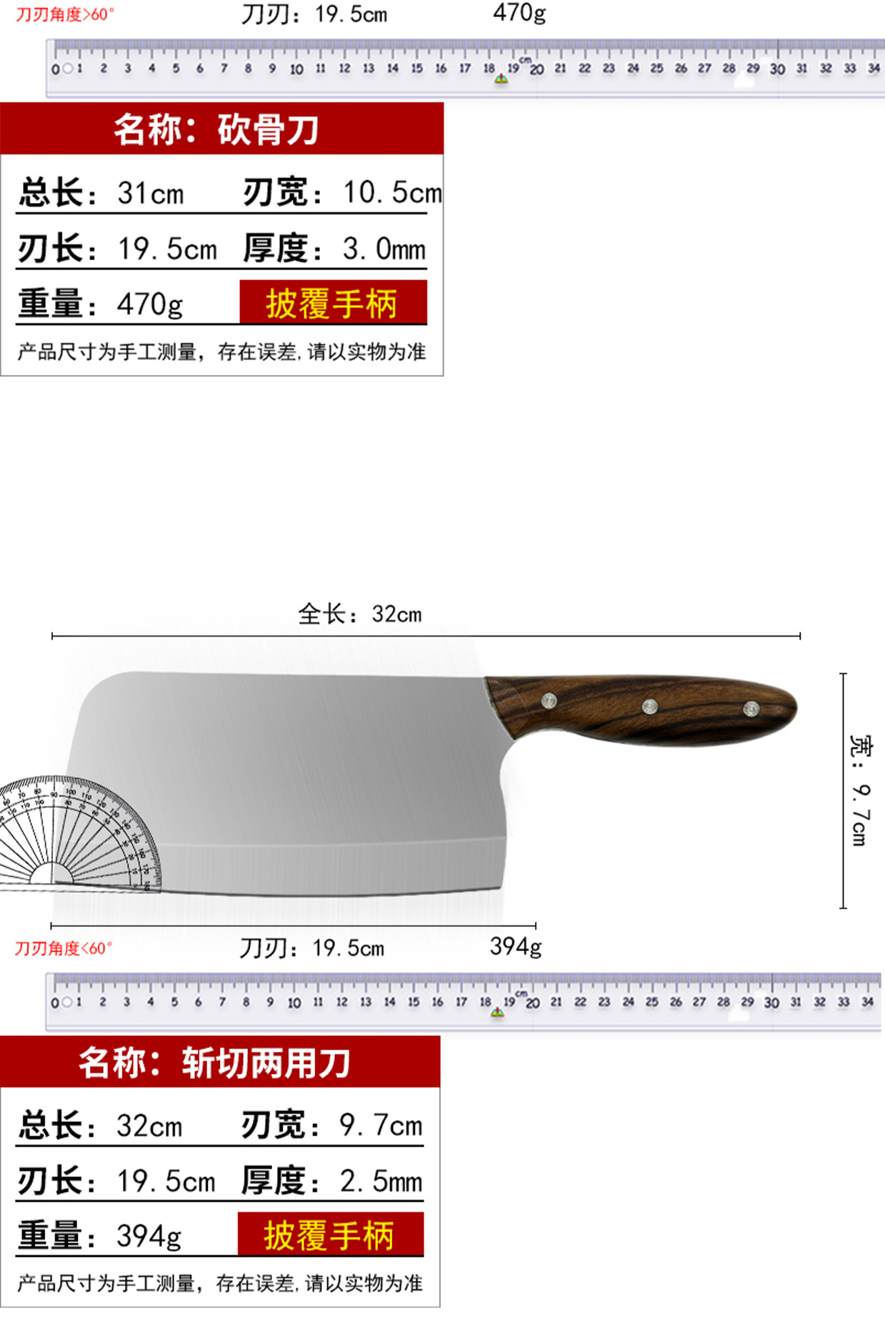 仕様 Sh007-鍛造骨切り刀-カバーハンドル,Sh008-鍛造カットナイフ-カバーハンドル,Sh009-鍛造カッター-カバーハンドル
