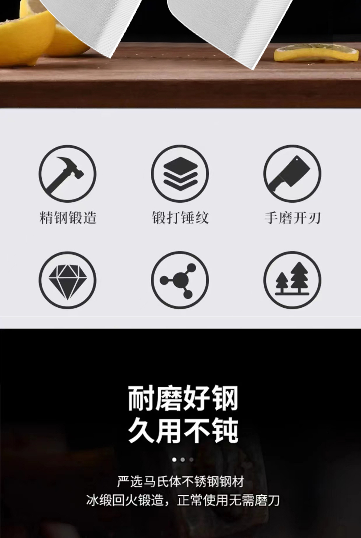 陽江はステンレスの包丁を鍛えて家庭用の鋭利な切片の刀を切って両用の刃物の台所で肉の刀を切って骨の刀を切ります。