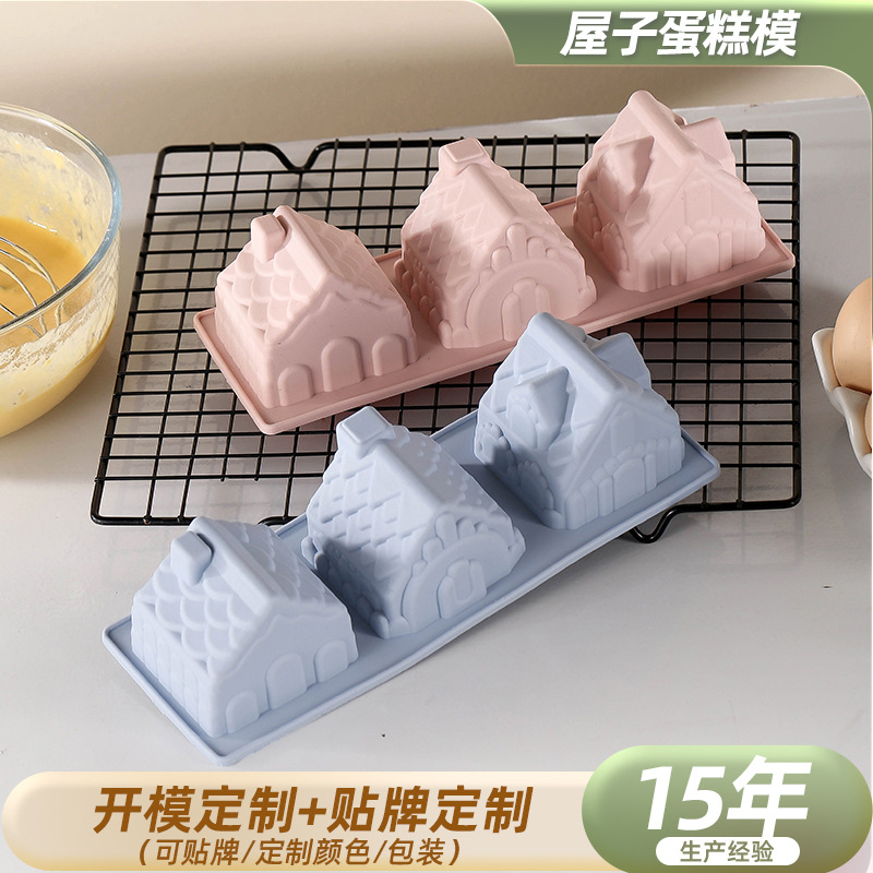 クロスボーダーのシリカゲルのアイデア3連の家のクリスマスのケーキの金型の家庭用DIYは高温に耐えて型を離れやすいです。