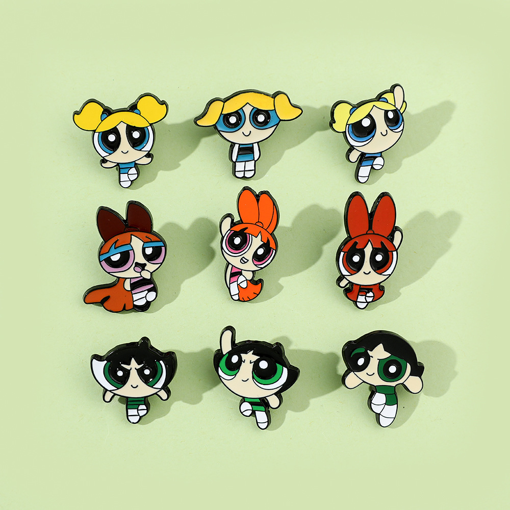 ヨーロッパとアメリカの映画やテレビの漫画のキャラクター少女メタルバッジパワーパフガールズ合金オイルドリップブローチアクセサリーピン