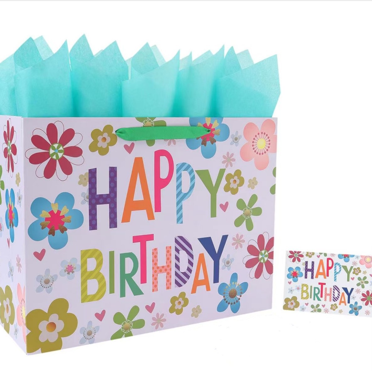 跨境生日快乐礼物袋套装,贺卡生日快乐手提袋高级感礼品袋.