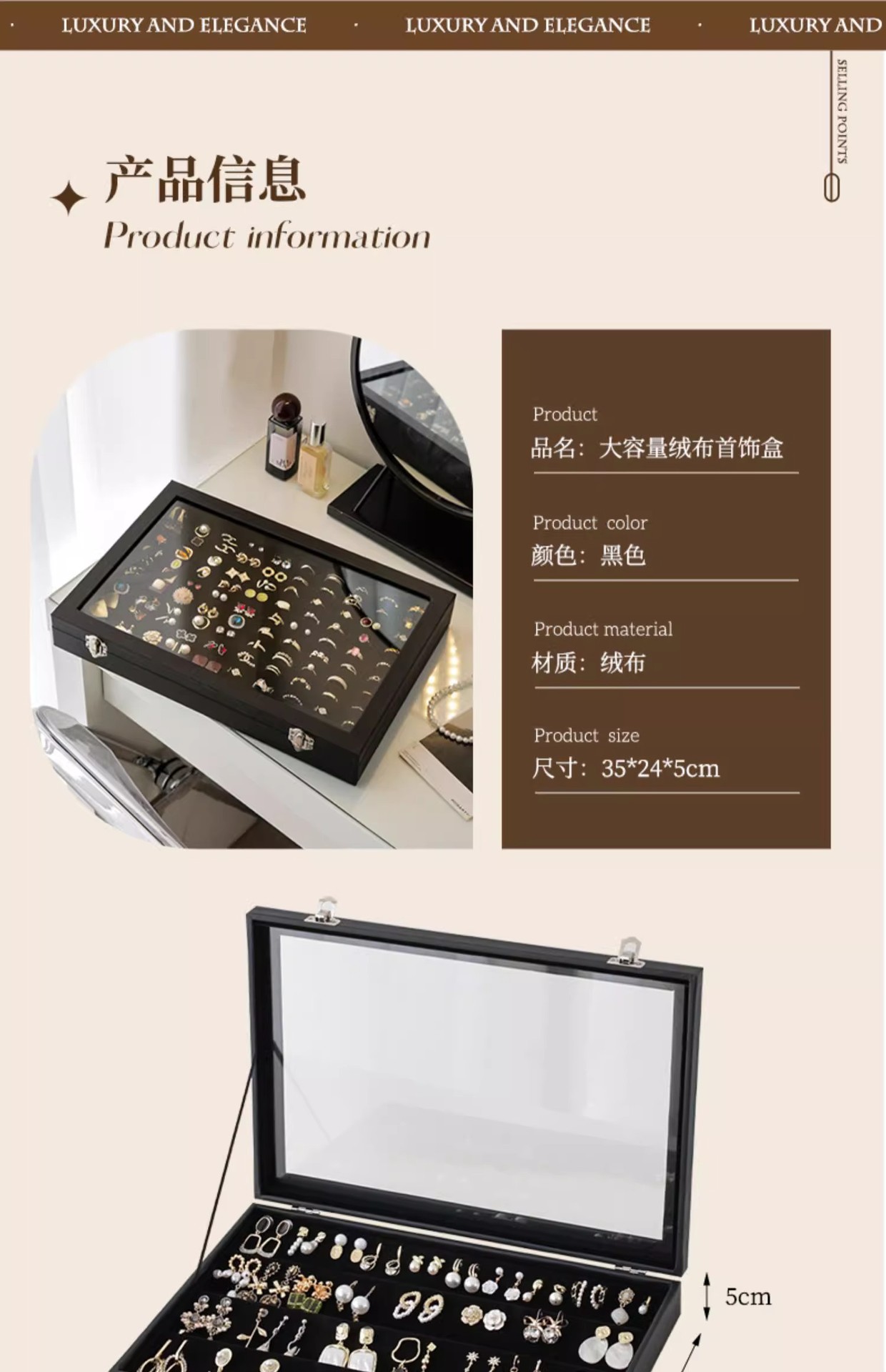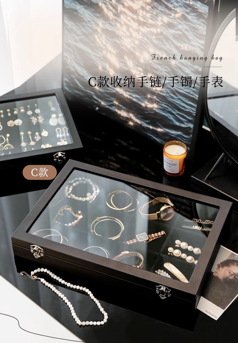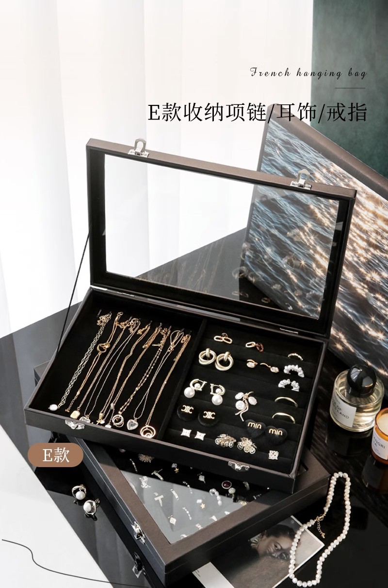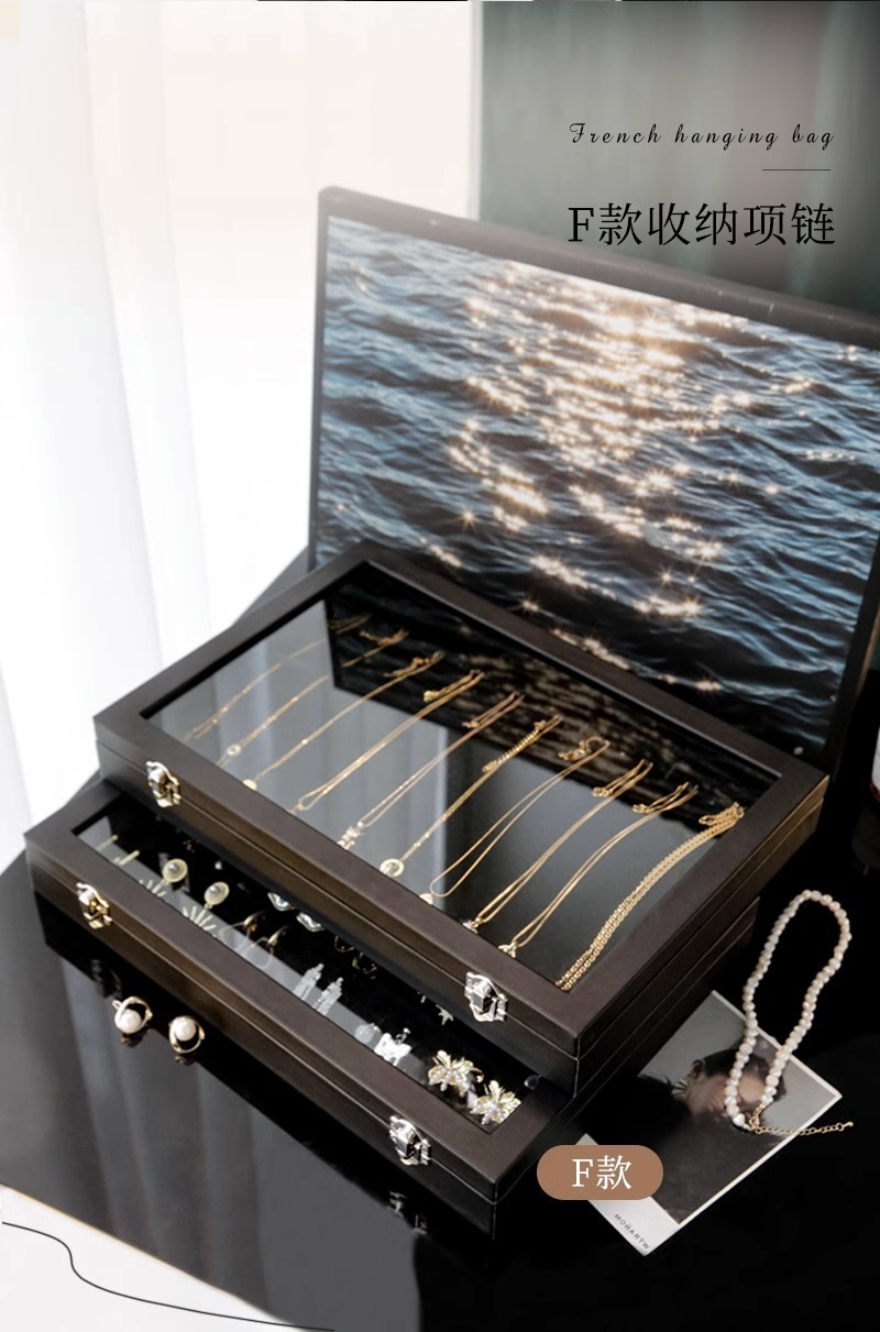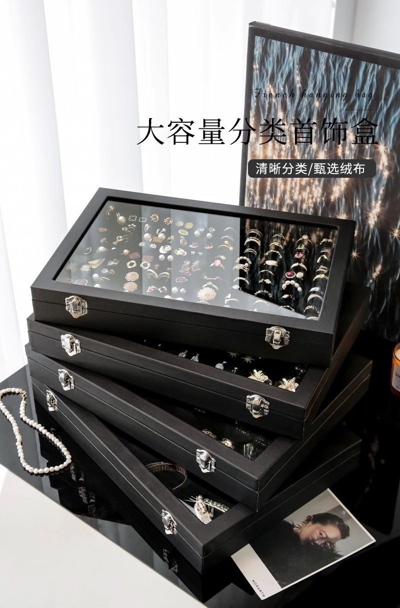 高級新作ガラスアクセサリー箱指輪イヤリングピアスブレスレットネックレスアクセサリー展示フランネルジュエリー収納ケース