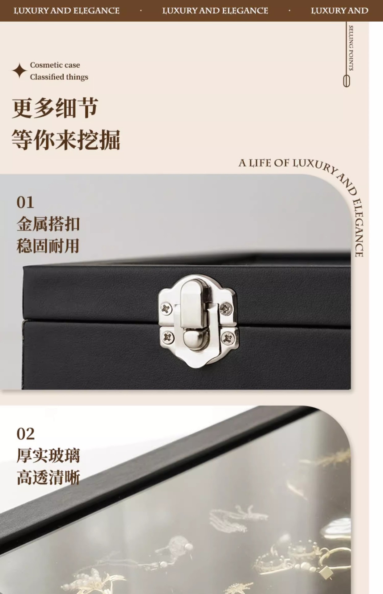 蓋付きイヤリングジュエリージュエリー箱仕切り格子ブレスレットネックレス指輪ペンダント文遊覧物収納展示ケース