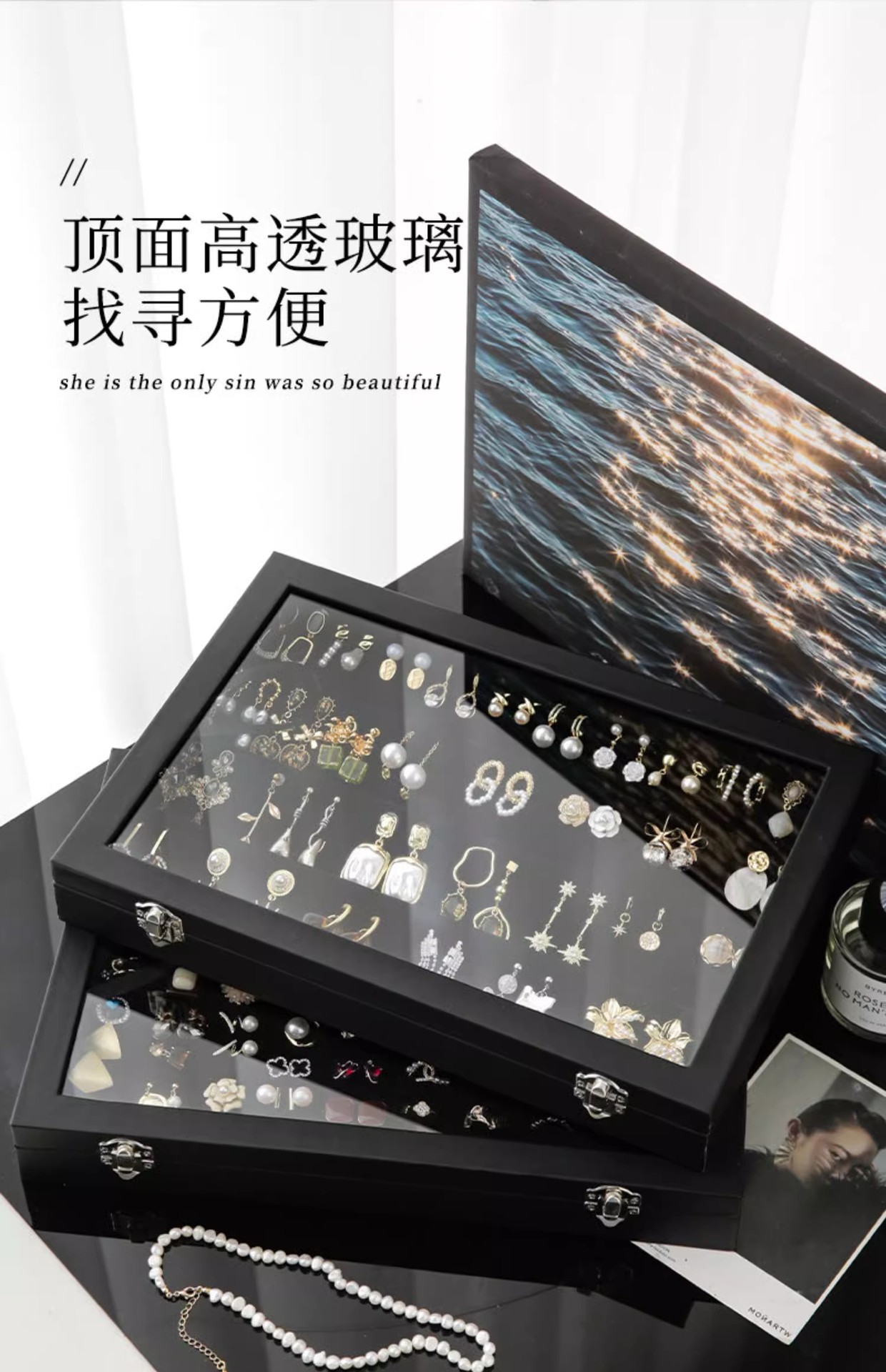 イヤリング収納ケースピアスイヤリング展示棚高級精致大容量神器専用指輪ネックレスアクセサリーケース