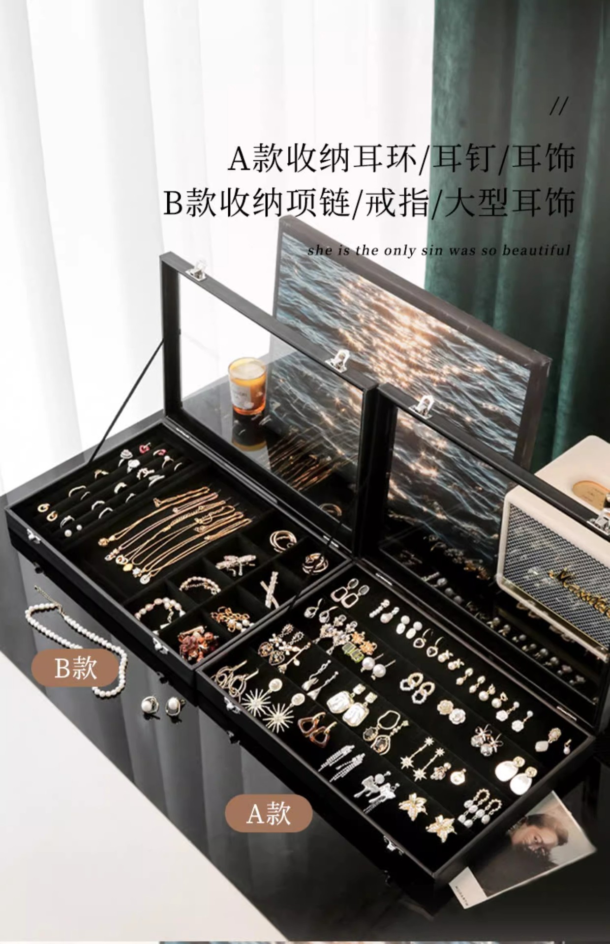 ジュエリー収納ケースネットレッドins風大容量家庭用整理ケースイヤリングネックレス携帯収納ケース